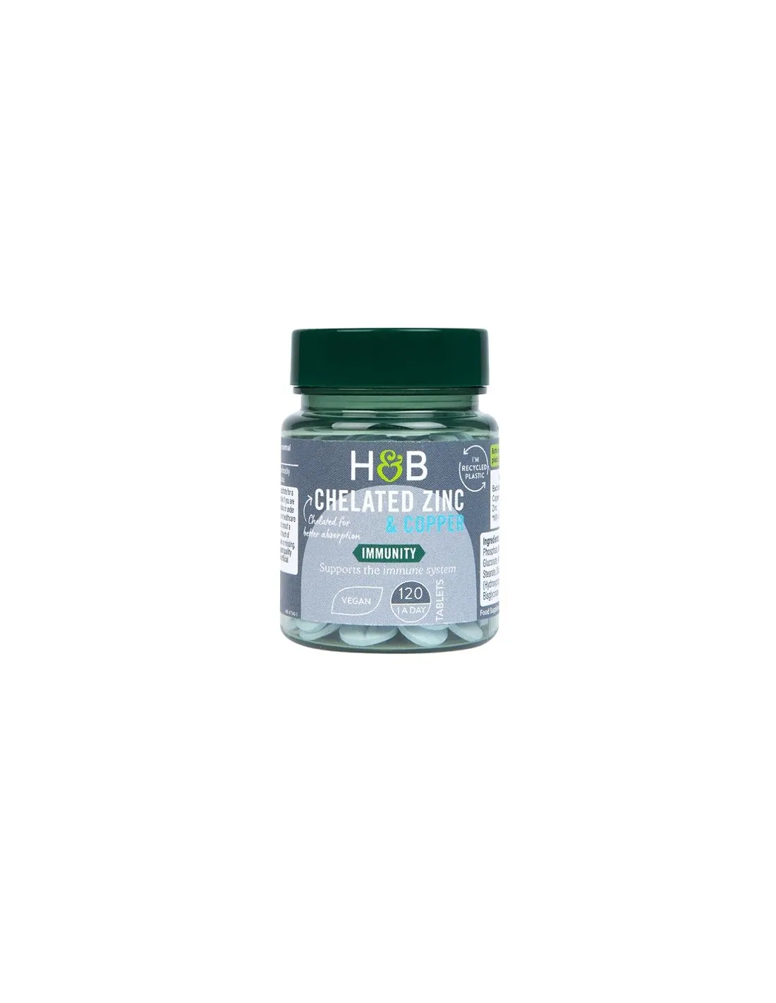 Holland & Barrett High Strength Chelated Zinc with Copper Tabletten unterstützen die verbesserte Funktionalität des Immunsystems.