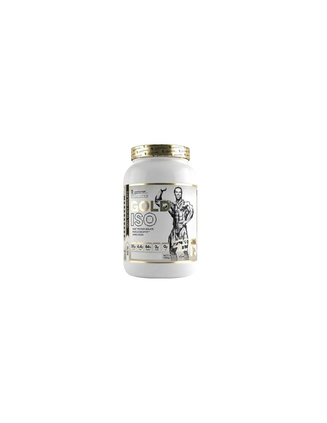 Levrone GOLD-ISO. Es enthält Süßstoffe. Whey Protein Isolat Pulver zur Zubereitung eines proteinreichen Shakes. Das Produkt wird für Sportler und körperlich aktive Menschen mit erhöhtem Proteinbedarf empfohlen. Protein trägt zum Wachstum der Muskelmasse bei.