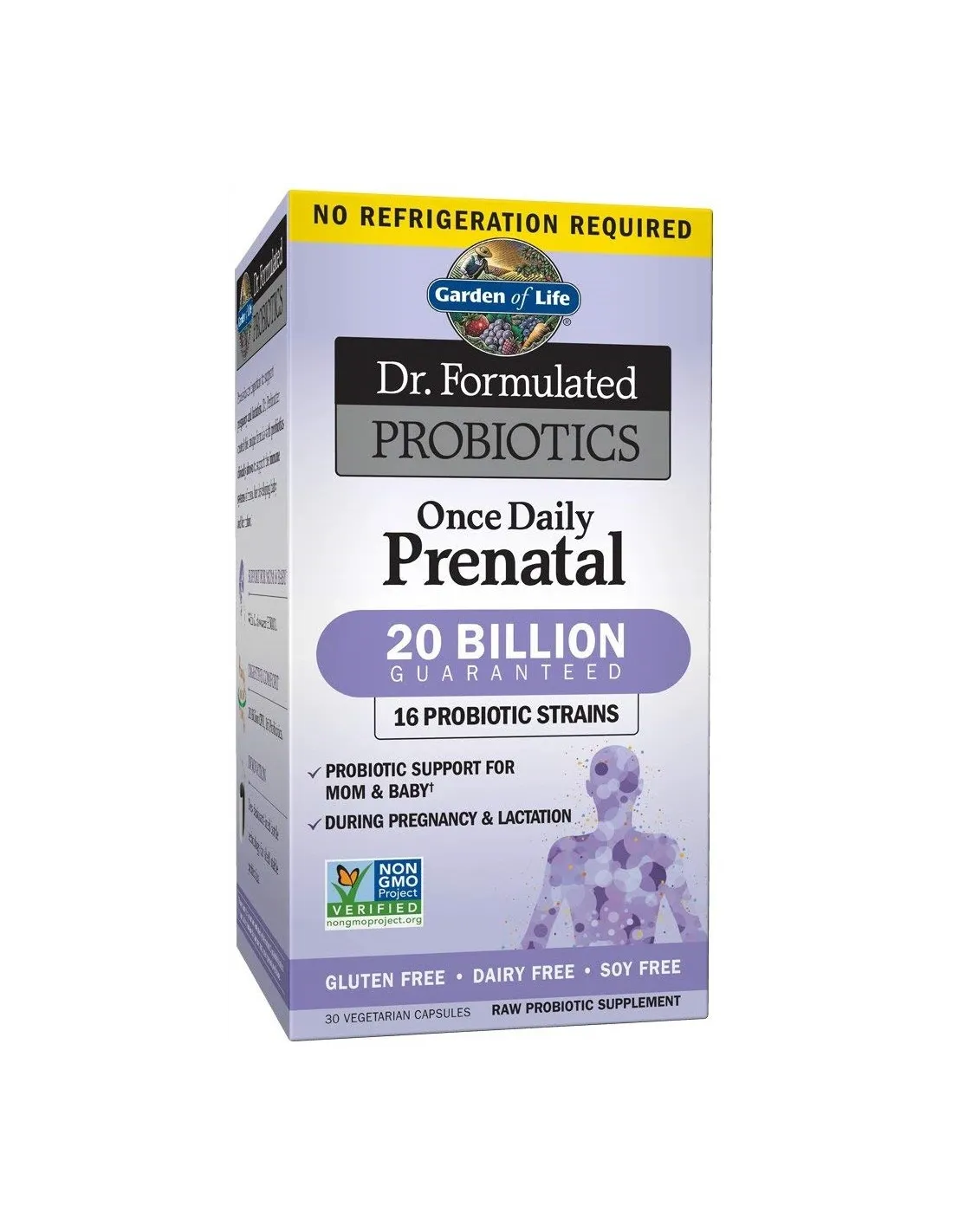 Dr. Formulated Once Daily Prenatal—clinically studied probiotics to support the immune system of mom, baby and her infant in just one capsule per day.