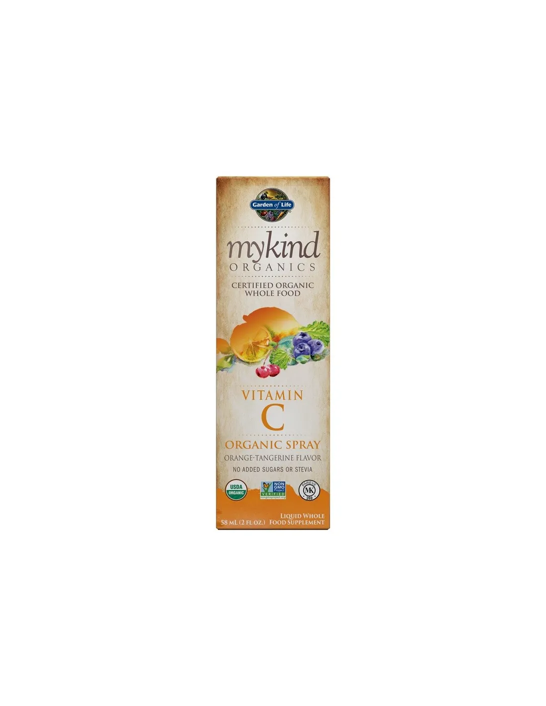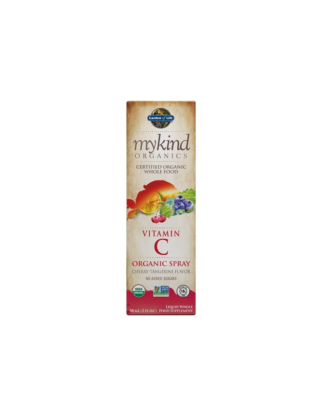 Mykind Vitamin C by Garden of Life is a whole food, vitamin C formula that’s both Certified USDA  and Non-GMO Project Verified—all in an easy-to-use, great-tasting orange-tangerine spray.