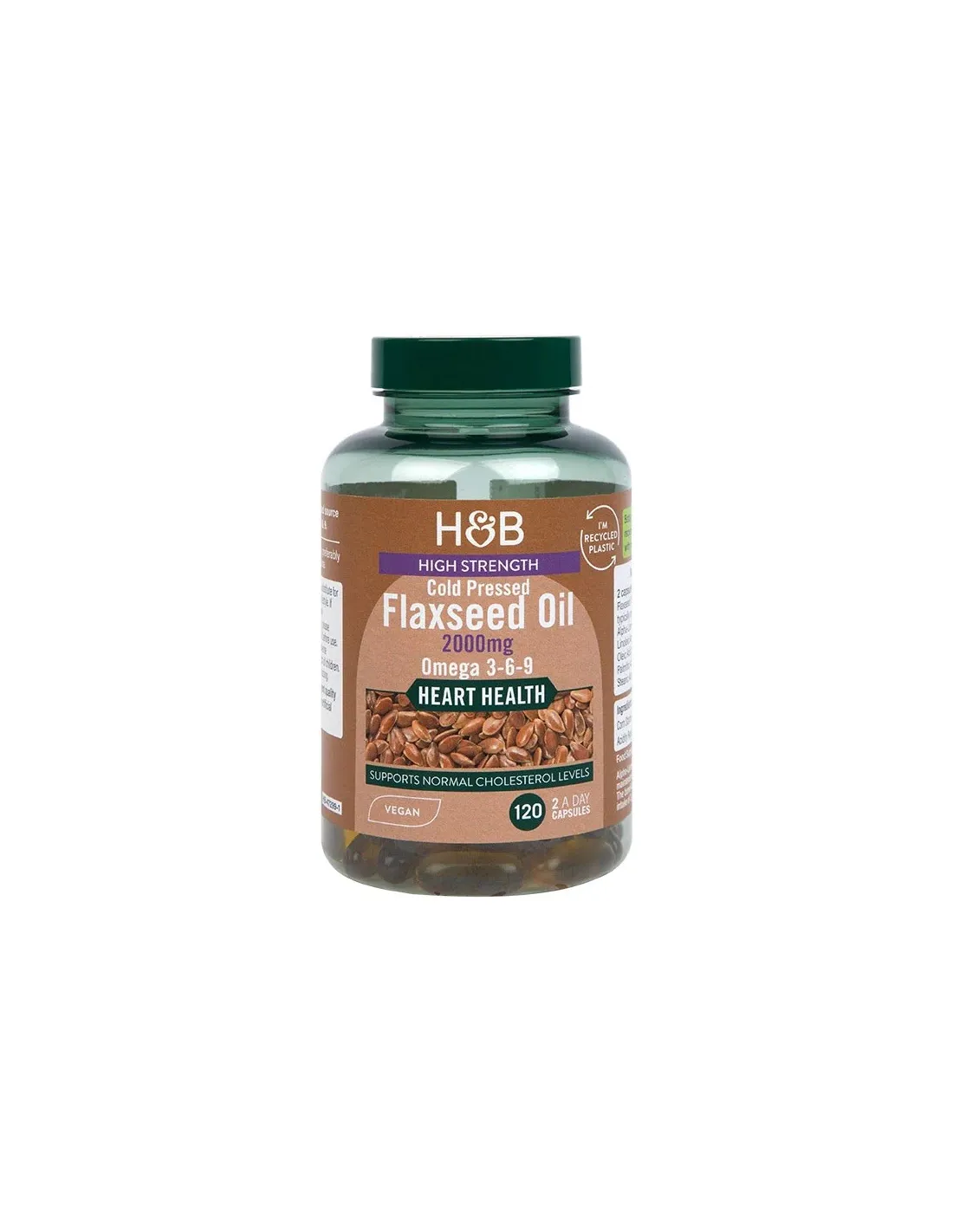 Holland & Barrett Vegan High Strength Flaxseed Triple Omega 3-6-9 Oil is a great source of Omega-3 fatty acids that support the maintenance of normal blood cholesterol and are suitable for vegan diets.