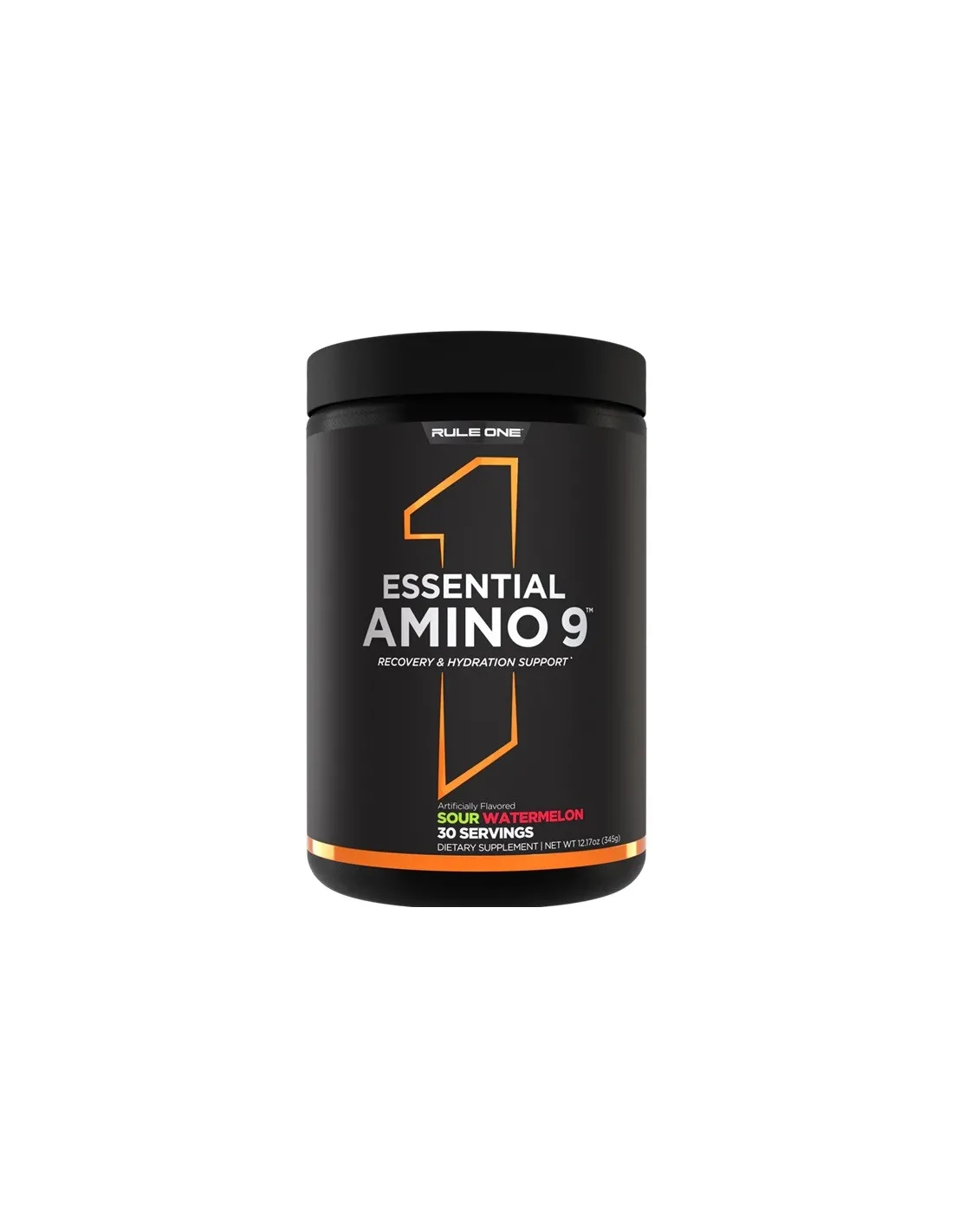 Rule One Essential Amino 9 in a convenient 345g format, designed specifically for athletes and fitness enthusiasts. This premium supplement features nine essential amino acids that play a crucial role in muscle recovery, growth, and overall performance.