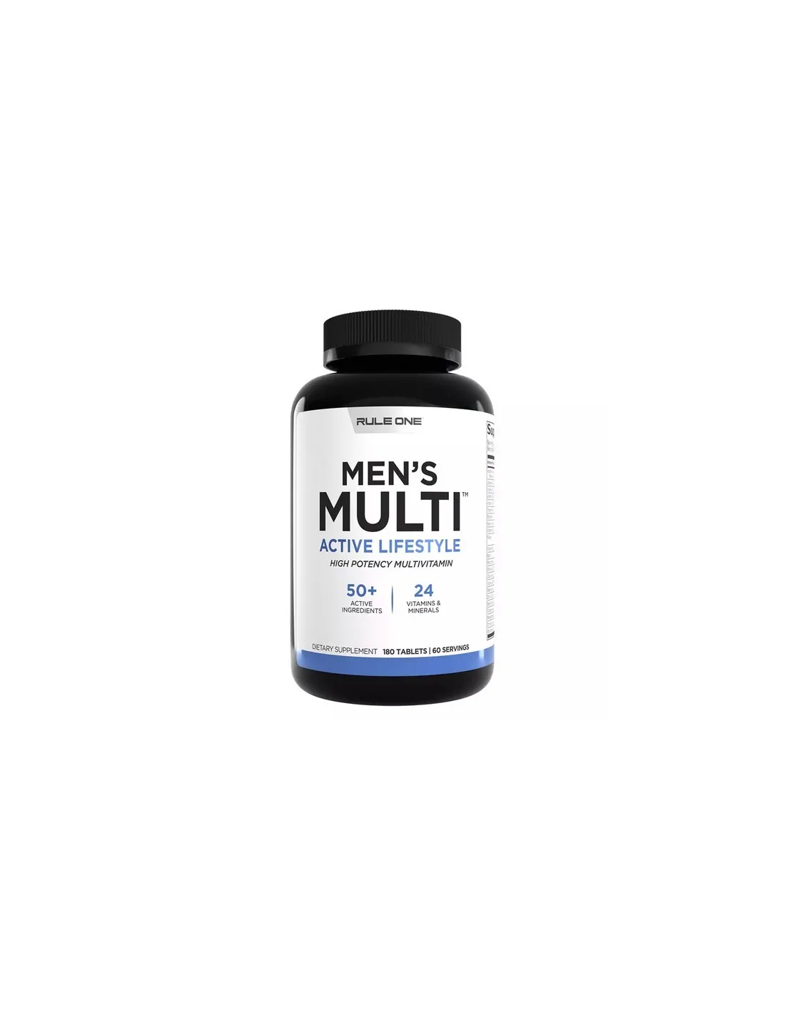Introducing the Rule One Men's Multi - 180 tablets, a premium multivitamin specifically designed for active men. This comprehensive formula goes beyond standard multivitamins, providing the essential vitamins and minerals your body needs to perform at its best. With over 50 ingredients, including 24 vitamins and minerals, this supplement supports energy production, vitality, and overall health.