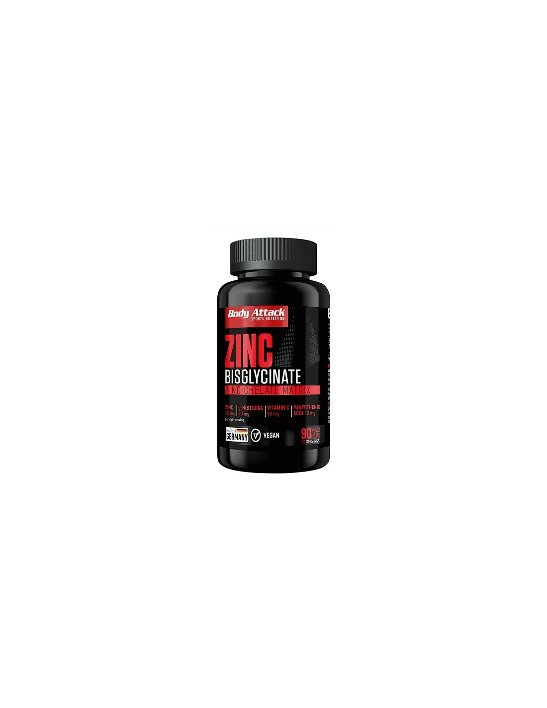 Body Attack Bisglicinato de Zinc es un complemento alimenticio de alta calidad formulado para aportar al organismo la dosis óptima de zinc, un mineral esencial para numerosos procesos biológicos. Cada cápsula contiene 25 mg de zinc en forma de bisglicinato, una forma de zinc altamente biodisponible que garantiza una absorción eficaz. Este suplemento es ideal para deportistas y personas físicamente activas que desean reforzar su sistema inmunitario y su salud en general.
