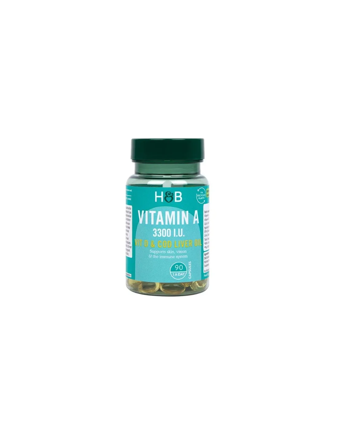 Holland & Barrett Vitamin A 3300 I.U cápsulas de gelatina blanda contienen una buena fuente de Vitamina A y D. Estas cápsulas contribuyen al funcionamiento normal del Sistema Inmunitario, al Metabolismo del Hierro y al Mantenimiento de una Piel y Visión Normales. El aceite de hígado de bacalao tiene un alto contenido en ácidos grasos insaturados y varias vitaminas vitales, como la vitamina A y la vitamina D, que nuestro organismo necesita para funcionar correctamente.