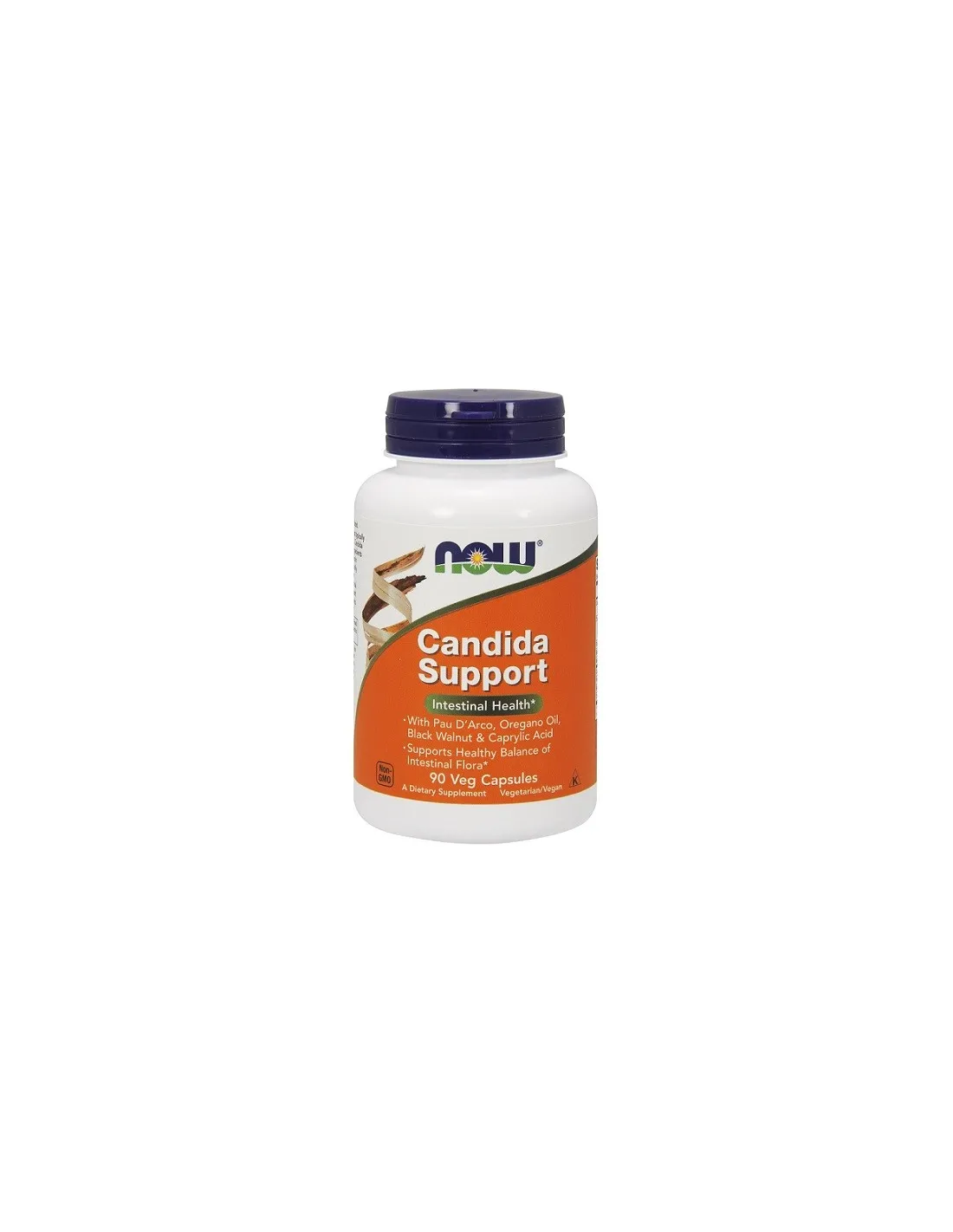 Candida albicans es una levadura natural que se encuentra normalmente en los intestinos como parte de la flora intestinal normal. NOW Foods ha creado Candida Support, una combinación de ingredientes herbales tradicionales y nutrientes esenciales. Al incorporar Pau D'Arco, nuez negra, aceite de orégano, biotina (una vitamina del complejo B) y ácido caprílico (un ácido graso natural de los aceites vegetales) en su fórmula, Candida Support ofrece una combinación completa para complementar sus necesidades dietéticas.