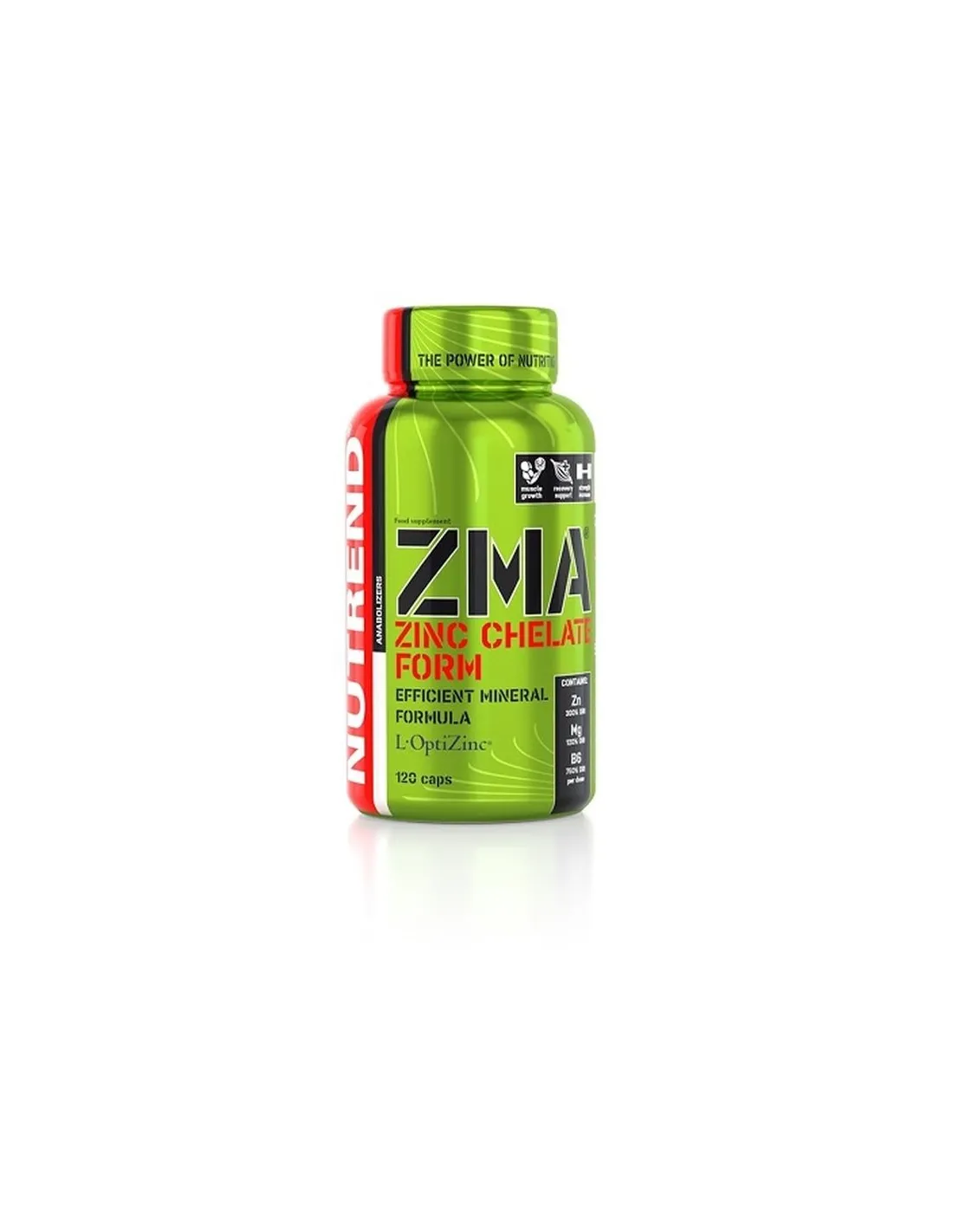 Otros ingredientes: Mezcla de ZMA (citrato de magnesio, óxido de magnesio, L-OptiZinc (sulfato de zinc mono-L-metionina), zinc L-aspartato, clorhidrato de piridoxina (vitamina B6)), cápsula de gelatina (gelatina, colorante dióxido de titanio, óxido de hierro).