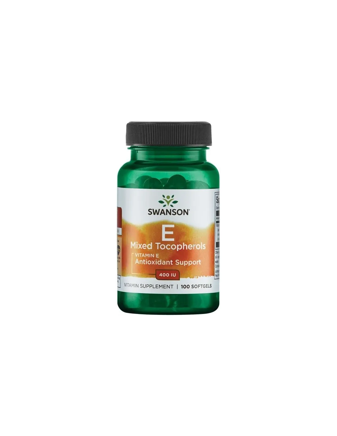 - Vitamin E Mixed Tocopherols de Swanson proporciona 400 UI (unidades internacionales) de vitamina E a partir de una mezcla de diferentes tocoferoles. Esta alta biodisponibilidad garantiza que el cuerpo pueda absorber y utilizar eficazmente los efectos de la vitamina E.