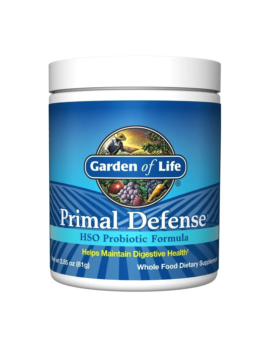 Primal Defense est un mélange de 12 espèces de probiotiques, y compris les Homeostatic® Soil Organisms (HSO), utilisant le processus Poten-Zyme® et fourni avec une matrice d'aliments entiers. Le mélange de probiotiques HSO dans Primal Defense aide à promouvoir un équilibre digestif sain, à soutenir l'absorption et l'assimilation normales des nutriments et à aider à maintenir un système immunitaire sain. Primal Defense est créé à partir des espèces probiotiques suivantes ou de leurs enzymes : Lactobacillus acidophilus, Lactobacillus rhamnosus, Lactobacillus salivarius, Lactobacillus plantarum, Lactobacillus paracasei, Lactobacillus casei, Lactobacillus brevis, Bifidobacteriumbifidum, Bifidobacteriumbreve, Bifidobacteriumlactis, Bifidobacteriumlongum, Bacillus subtilis, et Saccharomyces boulardii.