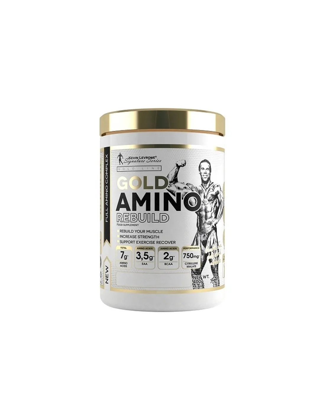 Mélange d'acides aminés (L-glutamine, L-leucine, L-isoleucine, L-valine, L-lysine, L-thréonine, L-tryptophane, L-phénylalanine, L-arginine, L-méthionine, L-histidine), chlorhydrate de bétaïne, malate de citrulline, L-carnitine L-tartrate, calcium β-hydroxy-β-méthylbutyrate, mélange de vitamines [niacine (nicotinamide), vitamine B6 (chlorhydrate de pyridoxine), vitamine B12 (cyanocobalamine)], arômes, colorants, sel, édulcorants (sucralose, acésulfame K).