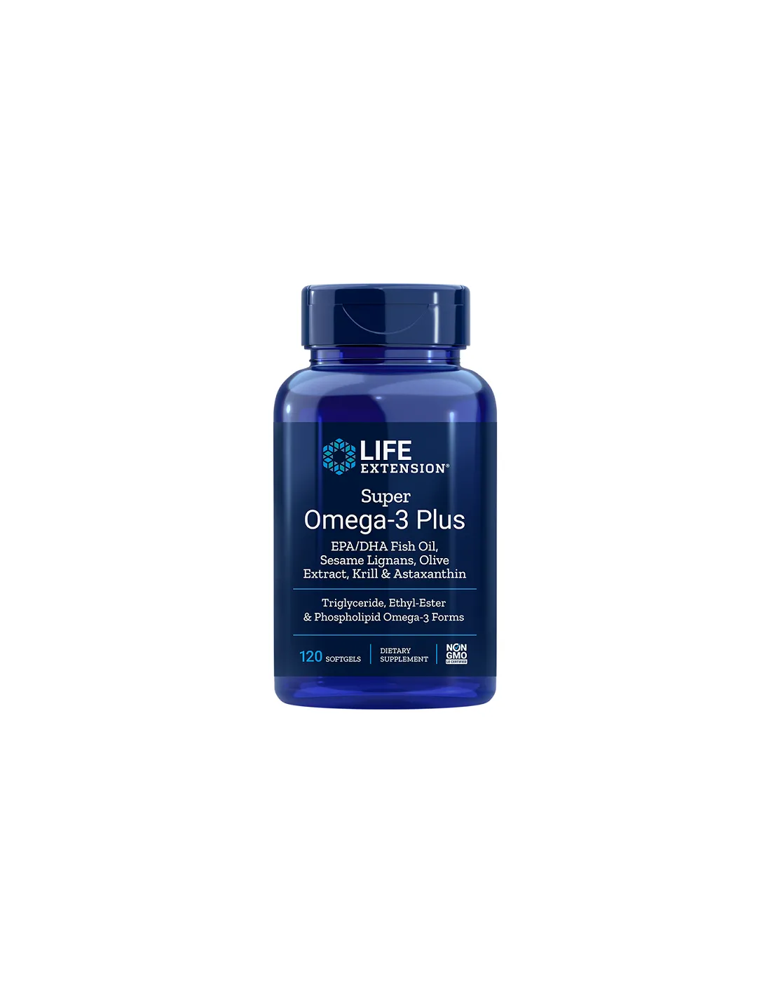 Life Extension Super Omega-3 Plus combine EPA/DHA, lignanes de sésame et extrait d'olive dans une formule distillée moléculairement conçue pour soutenir les fonctions cardiaques et cognitives. Ce complément alimentaire avancé enrichit votre alimentation quotidienne avec des acides gras essentiels oméga-3 dérivés d'huile de poisson sauvage pure et de krill antarctique. Avec son classement IFOS 5 étoiles et sa vérification non-OGM, ce produit vous assure la plus haute qualité.