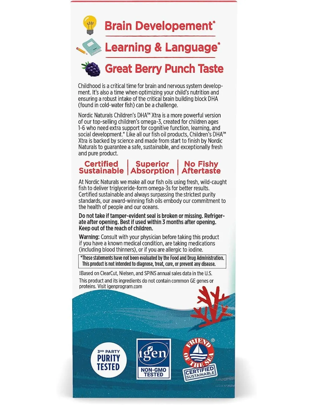 Le DHA Xtra 636mg des enfants de Nordic Naturals est le nouveau supplément concentré d'oméga-3 pour les enfants qui ne mangent pas assez de poisson. Cette formule fournit trois fois le DHA oméga-3 que le DHA original de nos enfants pour un soutien supplémentaire pour la santé cognitive.