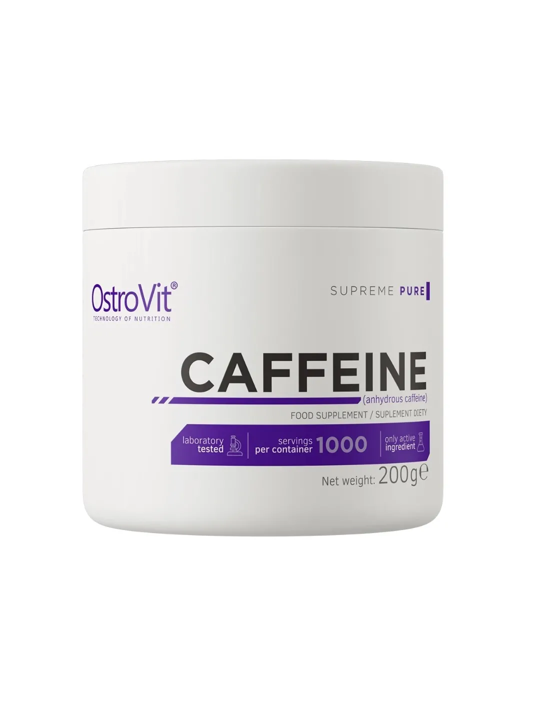 OstroVit Caféine en poudre a un poids net de 200 g et contient un total de 1000 portions. Chaque portion est de 200 mg, ce qui permet d'ajuster facilement le dosage en fonction de vos besoins.