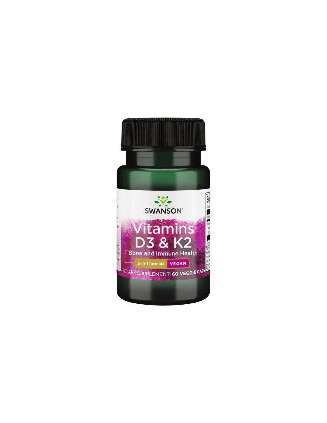 Les vitamines D3 et K2 de Swanson sont fournies sous des formes biodisponibles de vitamines D et K. La D3 provient de lichens et la K2 est fournie sous forme de MK-7 à partir d'une source de pois chiches sans soja.