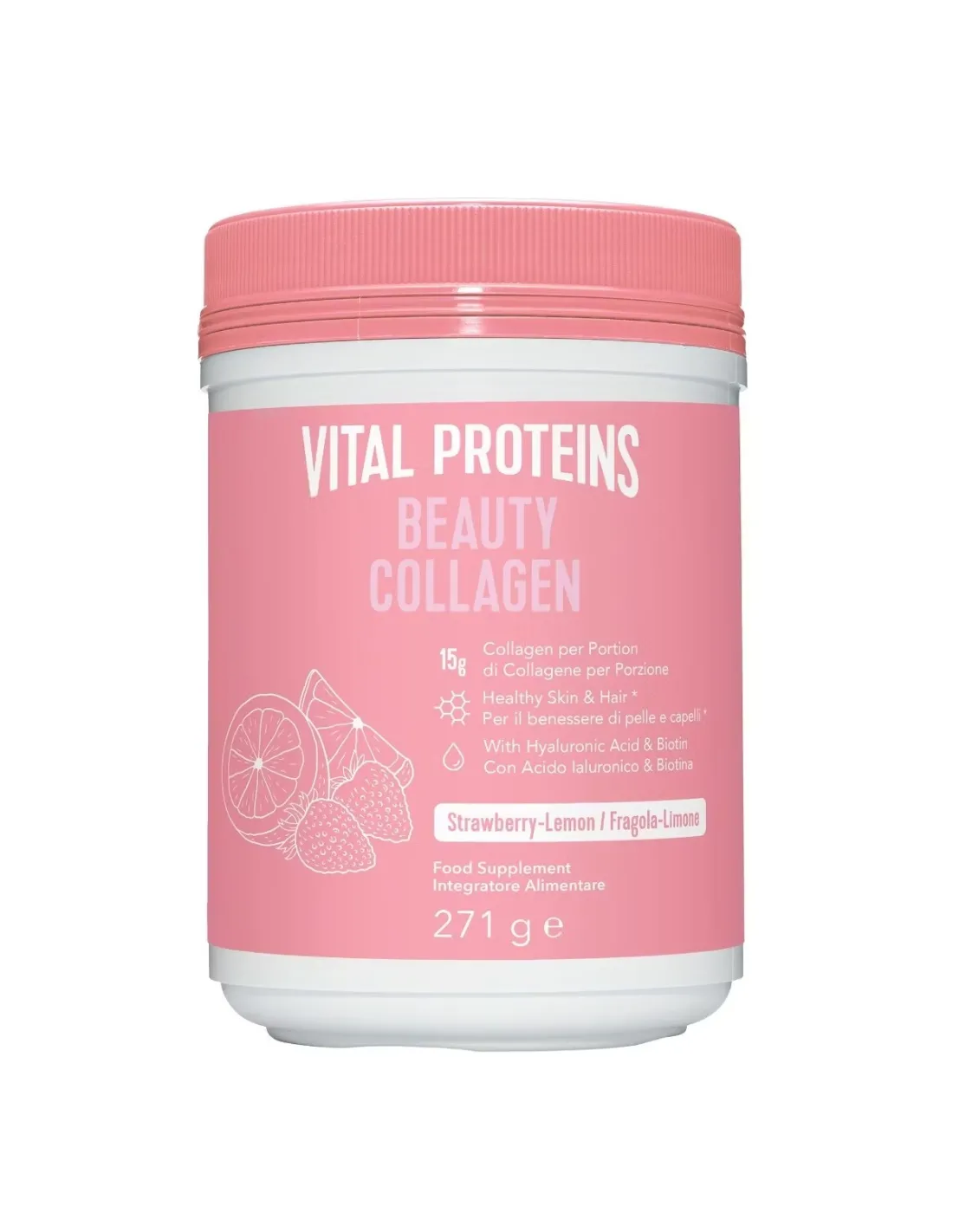 Vital Proteins Beauty Collagen est un complément alimentaire contenant des peptides de collagène, de l'acide hyaluronique et de la biotine sous forme de poudre.