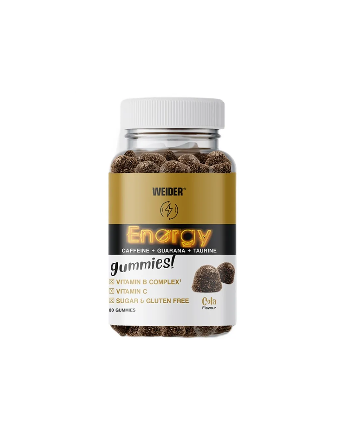 Les Weider Energy Gummies ne contiennent que 38 calories par portion, ne contiennent pas de graisse, de sucre ou d'allergènes.