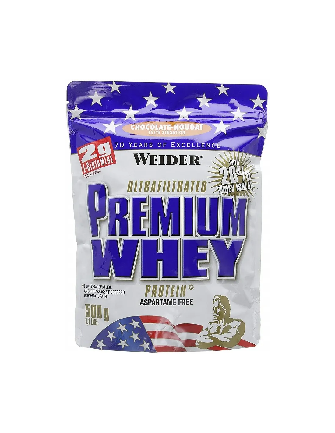 Premium Whey de Weider est un mélange de concentré et d'isolat de protéines de lactosérum à très faible teneur en glucides et en lipides.