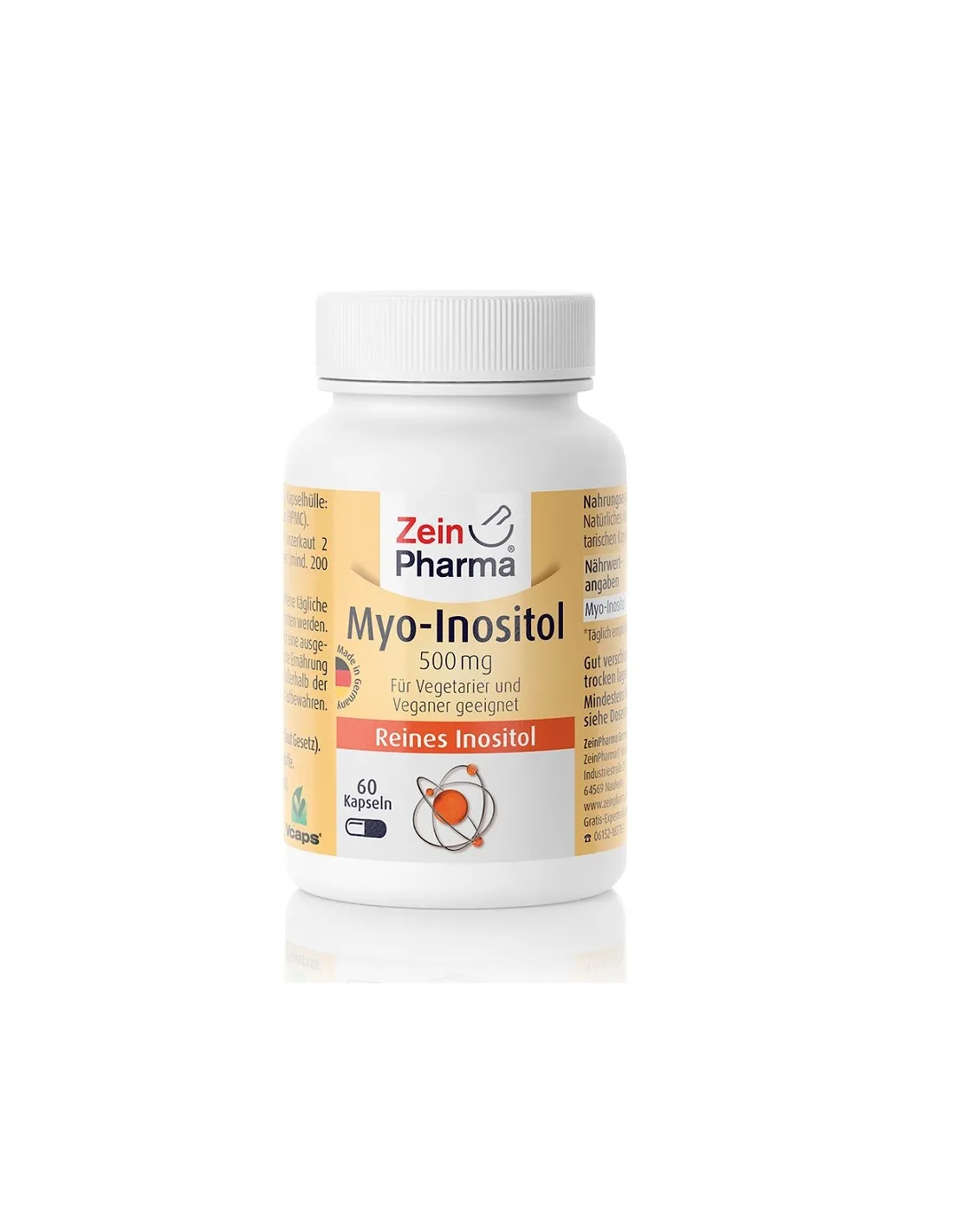 Les gélules de myo-inositol de ZeinPharma constituent une excellente source d'inositol : Chaque gélule contient 500 mg de myo-inositol pur.