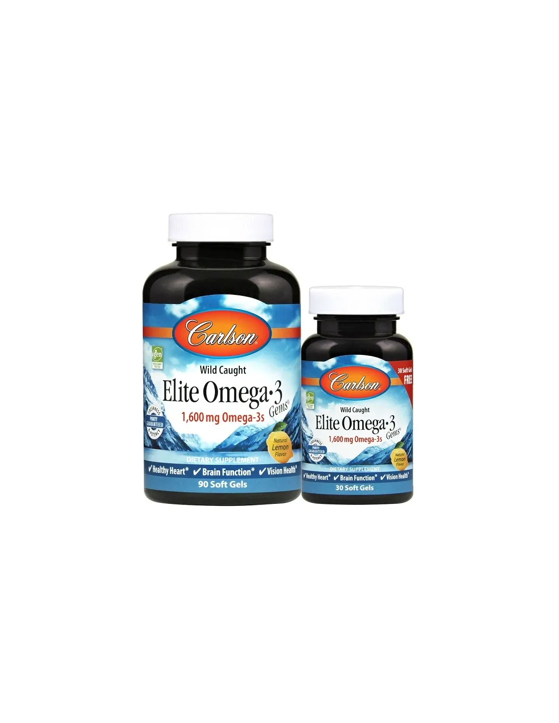 Carlson Elite Omega-3 Gems sono softgel di qualità superiore che forniscono 1.600 mg di acidi grassi omega-3 per ogni dose. Con EPA e DHA essenziali, supportano la salute di cuore, cervello, vista e articolazioni in un formato facile da assumere con naturale sapore di limone.