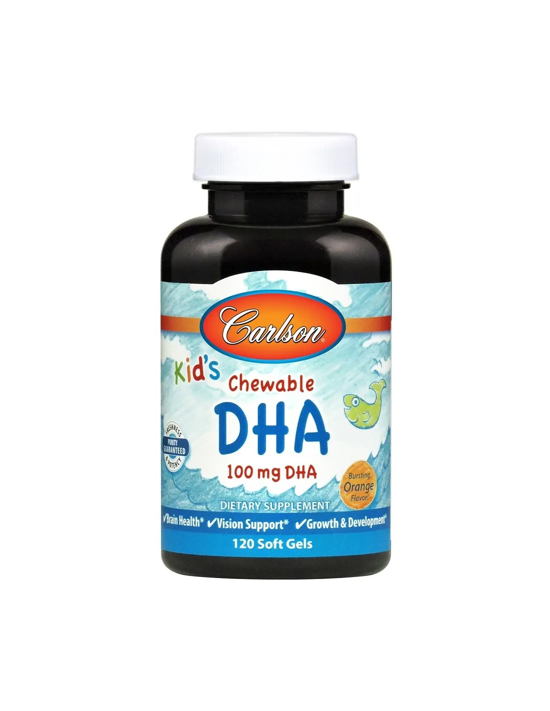 Il DHA masticabile per bambini di Carlson Labs è appositamente formulato per sostenere la crescita e lo sviluppo sano del cervello e della vista del bambino. Ogni softgel fornisce 100 mg di DHA (acido docosaesaenoico), un acido grasso omega-3 fondamentale per le funzioni cognitive e lo sviluppo visivo dei bambini.