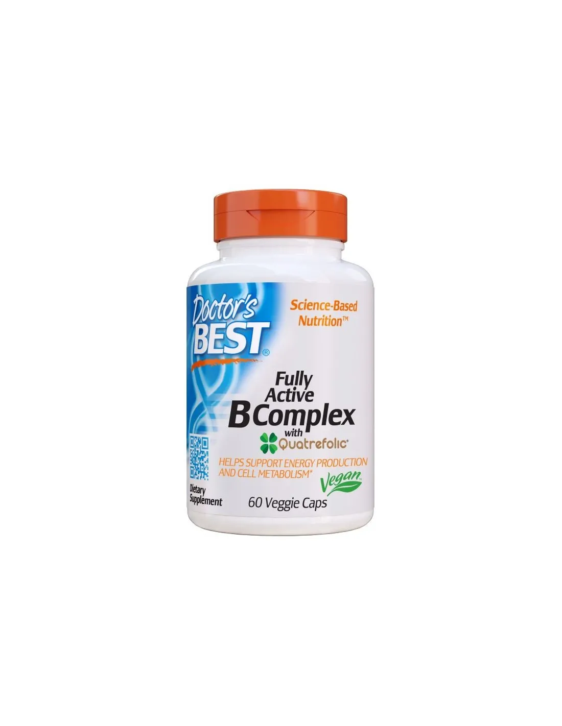 Doctor's Best Fully Active B-Complex è disponibile in capsule vegane in una confezione da 60. Il dosaggio consigliato è di assumere 1 capsula al giorno con il cibo per ottenere i migliori risultati. Come integratore alimentare vegetariano ad alto dosaggio, è privo di glutine, latticini e soia.