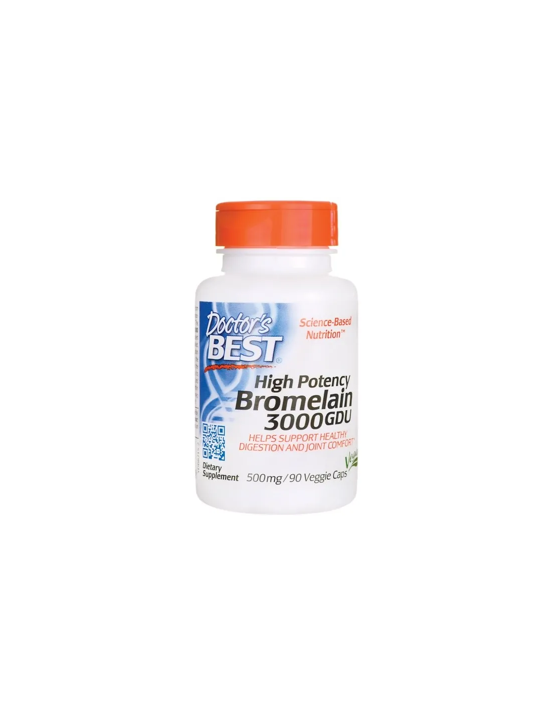 Doctor's Best High Potency Bromelain 3000 GDU è una forma ad alta potenza di bromelina, un enzima proteolitico estratto dal gambo e dal frutto dell'ananas. La bromelina ha proprietà proteolitiche, cioè è in grado di scomporre e digerire le proteine, favorendo la digestione generale. Gli enzimi come la bromelina contenuti in questo integratore possono essere molto utili per le persone che hanno difficoltà digestive o che provano disagio dopo pasti ricchi di proteine. Aggiungendo la bromelina ad alta potenza in capsule come integratore, si può migliorare la funzione dell'apparato digerente e facilitare la digestione delle proteine da carne, legumi e altri alimenti proteici.