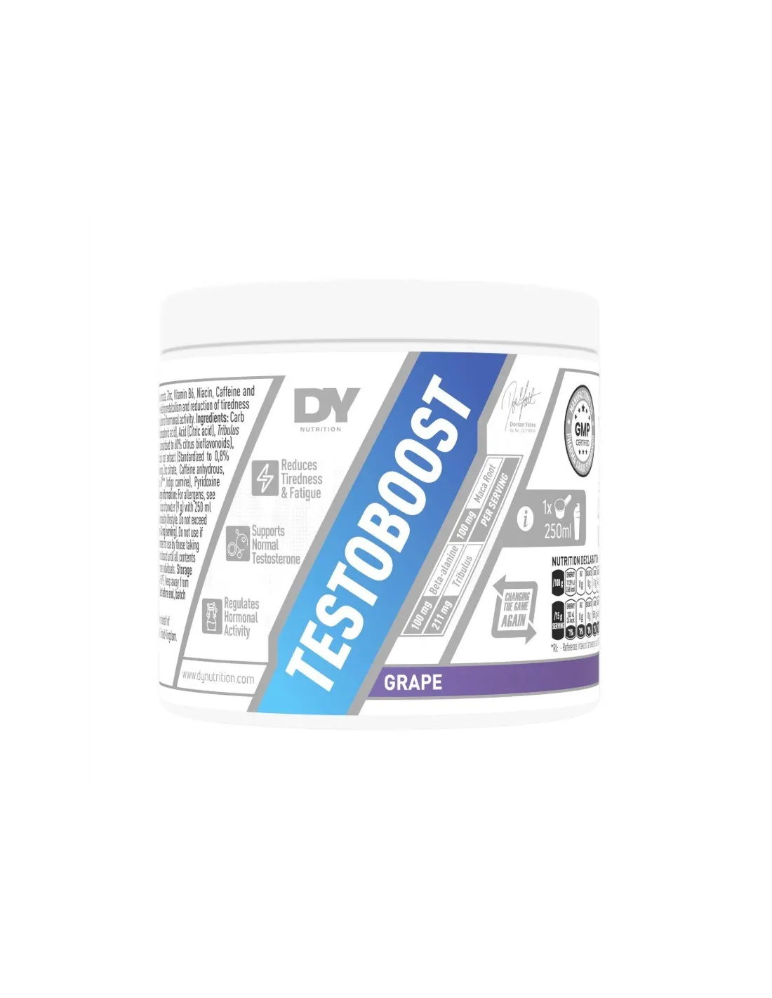 TESTOBOOST METABOLICO - Aromatizzato all'uva, estratti botanici, zinco, vitamina B6, niacina, caffeina e beta alanina, alimento destinato a soddisfare il dispendio di un intenso sforzo muscolare, soprattutto per gli atleti con zuccheri e dolcificanti.