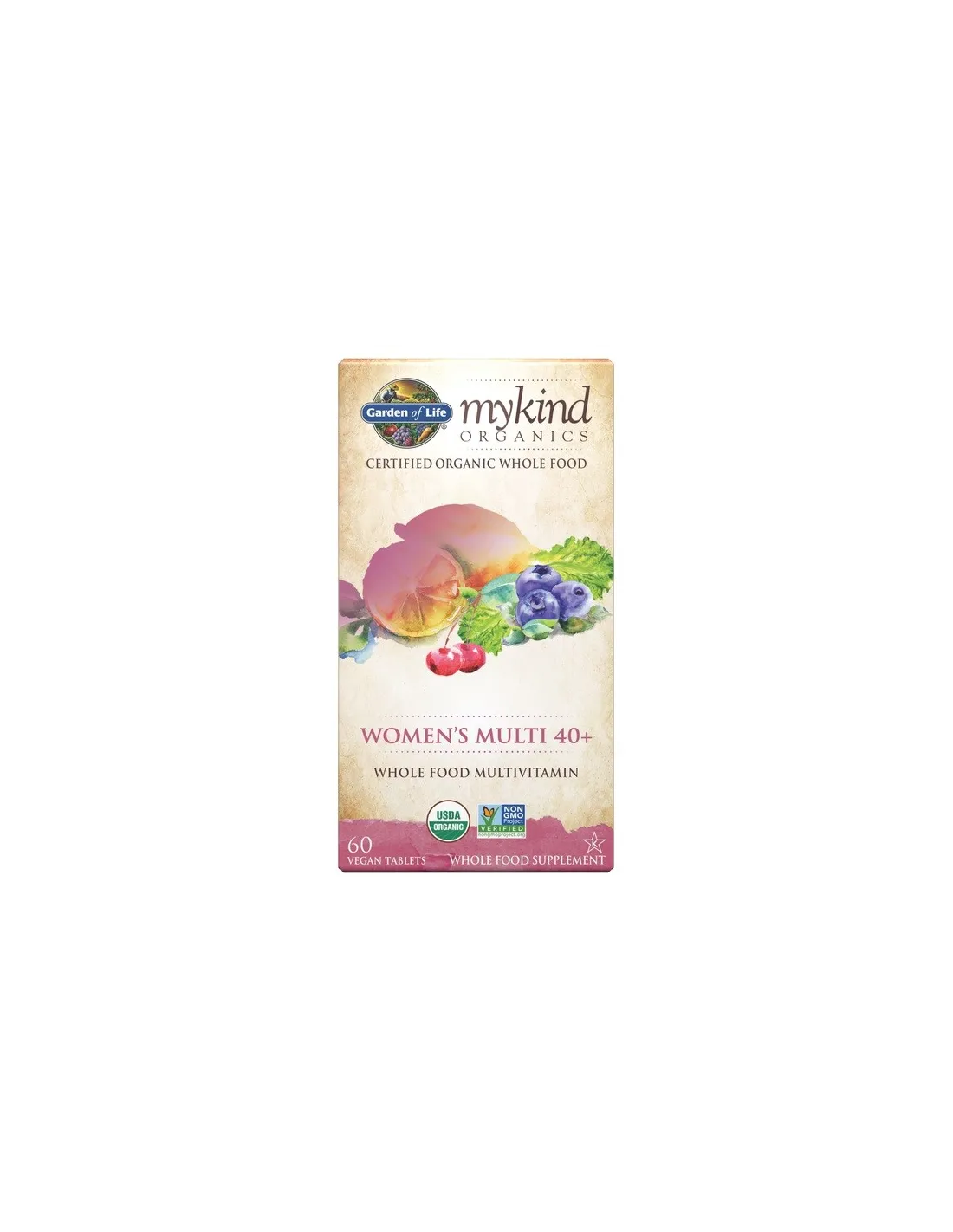 Creato a partire dalla natura utilizzando alimenti reali selezionati in modo ponderato e scientifico, mykind Organics Women's Multi 40+ è un multivitaminico vegan certificato USDA Organic e Non-GMO Project Verified. Questo integratore combina 20 vitamine e minerali essenziali da oltre 30 frutti, verdure ed erbe biologiche come limoni, annatto, bacche di amla e basilico santo.