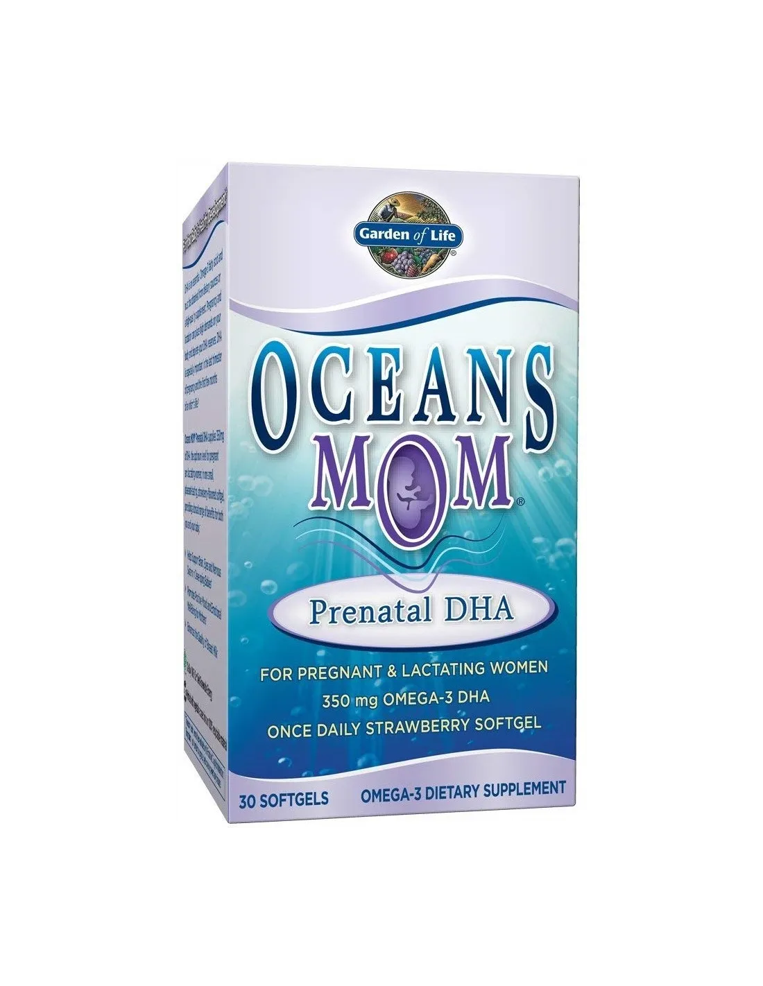 Oceans MOM Prenatal DHA fornisce 350 mg di DHA, il livello ottimale di DHA per le donne in gravidanza e in allattamento, in una piccola softgel al gusto di fragola dal sapore gradevole, che offre un'ampia gamma di benefici per voi e per il vostro bambino.†Il DHA è un acido grasso omega-3 essenziale e deve essere ottenuto da fonti alimentari o da un integratore di alta qualità . La gravidanza e l'allattamento possono comportare un elevato fabbisogno dell'organismo ed esaurire le riserve di DHA. Il DHA è particolarmente importante nell'ultimo trimestre di gravidanza e nei primi mesi di vita del bambino.