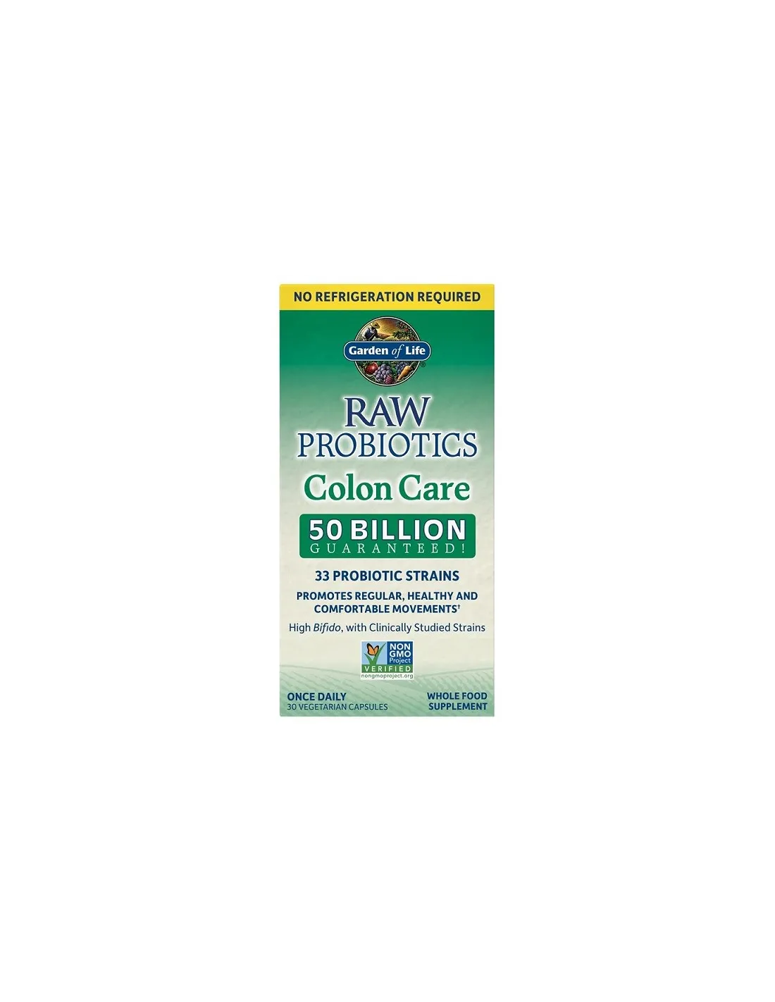 Garden of Life® Raw Probiotics Colon Care favorisce movimenti regolari, sani e confortevoli.† Il mantenimento di un sano equilibrio di batteri benefici nel colon favorisce il corretto funzionamento dell'apparato digerente e il benessere generale.† Ogni formula di Raw Probiotics ad alta potenza contiene un gruppo naturalmente diversificato di oltre 30 ceppi di probiotici benefici provenienti dallo yogurt bulgaro e dal kefir selvatico dell'Europa orientale. Raw Probiotics Colon Care è una formula probiotica ad alta potenza, cruda e integrale, che contiene una miscela proprietaria per la cura del colon con ceppi probiotici studiati clinicamente per promuovere un transito sano e confortevole del colon, l'eliminazione e il sostegno del sistema immunitario.†