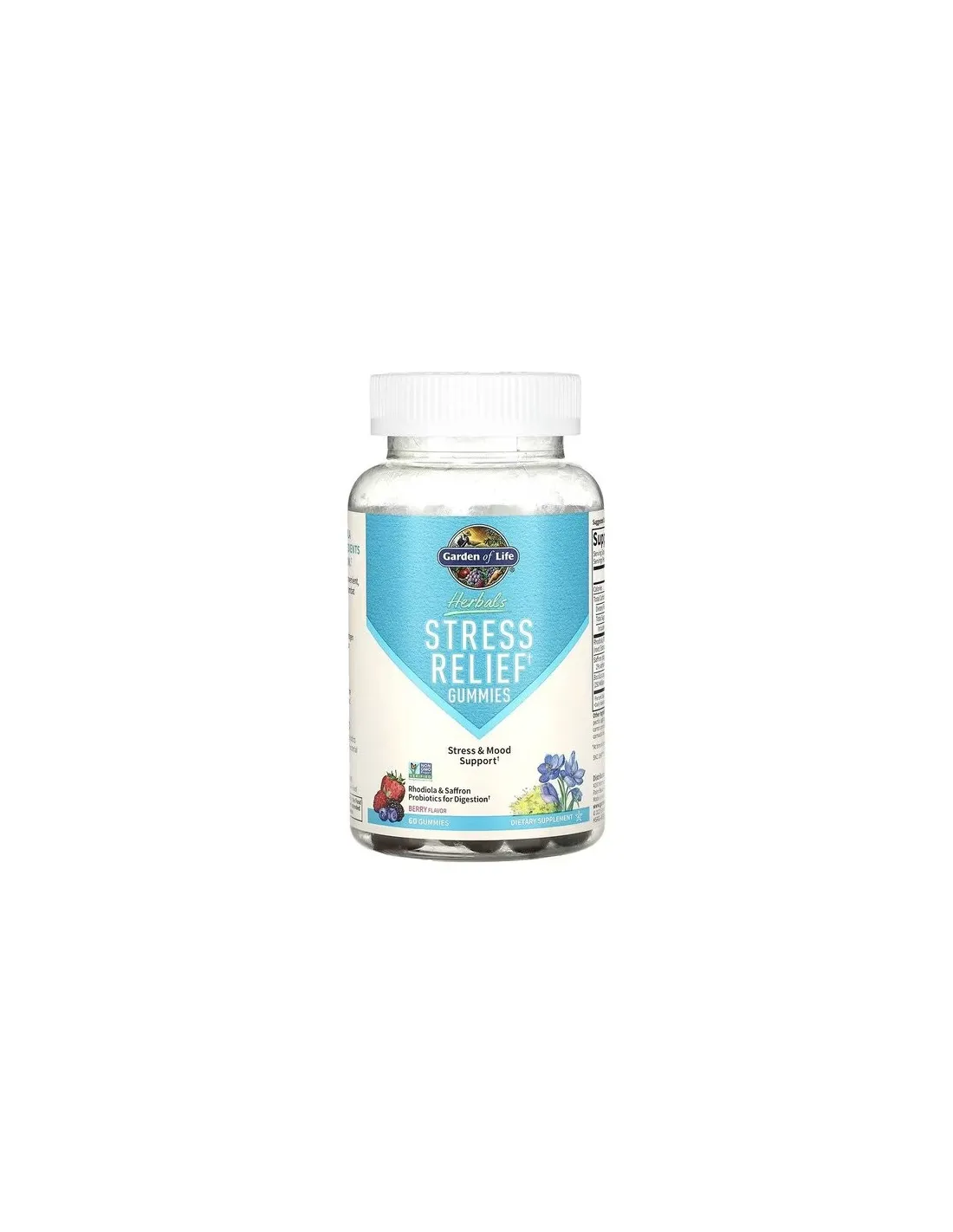 Rilassarsi e risollevare l'umore non è mai stato così facile, né così delizioso! Garden of Life Herbals Stress Relief†offre gommine antistress ricche di ingredienti che supportano l'umore, lo stress e la salute dell'apparato digerente.†Queste deliziose gommine contengono 100 mg dell'adattogeno rodiola, che ha dimostrato di fornire resistenza alla risposta allo stress.†Le gommine Stress Relief contengono anche 30 mg di zafferano, una spezia tradizionale della cucina, che ha dimostrato clinicamente di sostenere lo stress e l'umore.†Abbiamo inoltre aggiunto il probiotico B. coagulans SNZ 1969™, studiato clinicamente nel suolo, e prebiotici per sostenere la salute dell'apparato digerente.†Tutte queste bontà sono racchiuse in deliziose gommine al gusto di frutti di bosco con meno di 1 g di zucchero per porzione da 2 gommine. Grazie alla certificazione Non-GMO Project Verified e alla certificazione NSF Gluten Free, potete rilassarvi sapendo che queste deliziose caramelle sono state verificate da terzi.