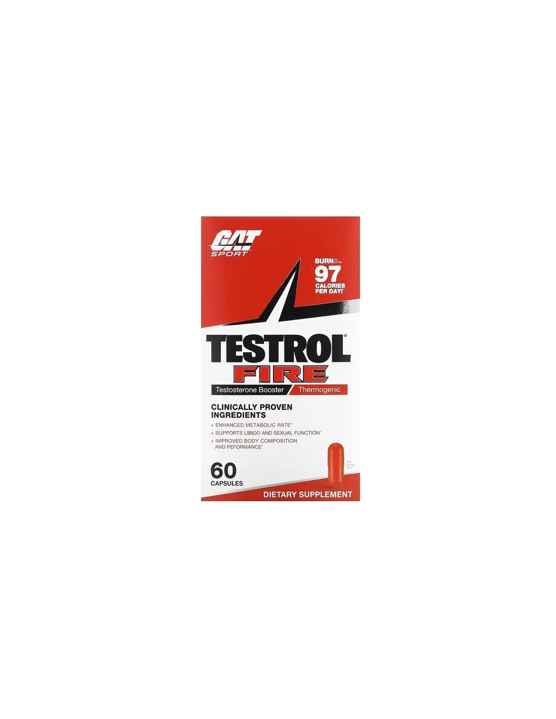 GAT Testrol Fire è un'innovativa formula termogenica maschile completa in due parti. Progettato per sostenere il testosterone libero e totale, può aiutare a ripristinare la vitalità giovanile, migliorando la crescita muscolare, la forza, la resistenza, l'energia e le prestazioni.