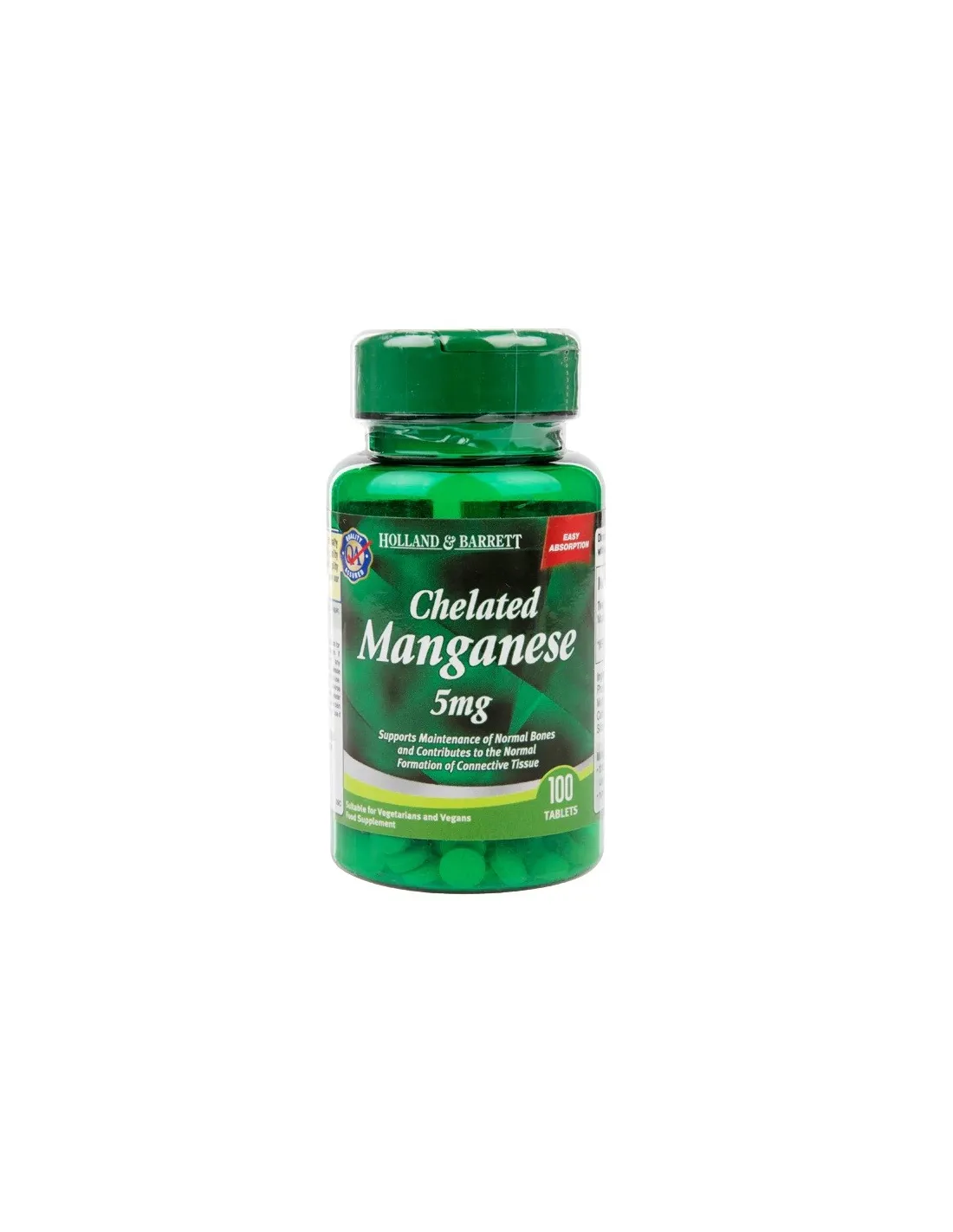 Le compresse di manganese chelato Holland & Barrett sono integratori alimentari di manganese chelato di facile assorbimento. Queste compresse sono adatte a vegani e vegetariani. Il manganese chelato sostiene la salute delle ossa e contribuisce alla normale formazione del tessuto connettivo. Il Manganese contribuisce inoltre al mantenimento di ossa normali, alla normale formazione dei tessuti connettivi, al normale metabolismo energetico, alla protezione delle cellule dallo stress ossidativo.