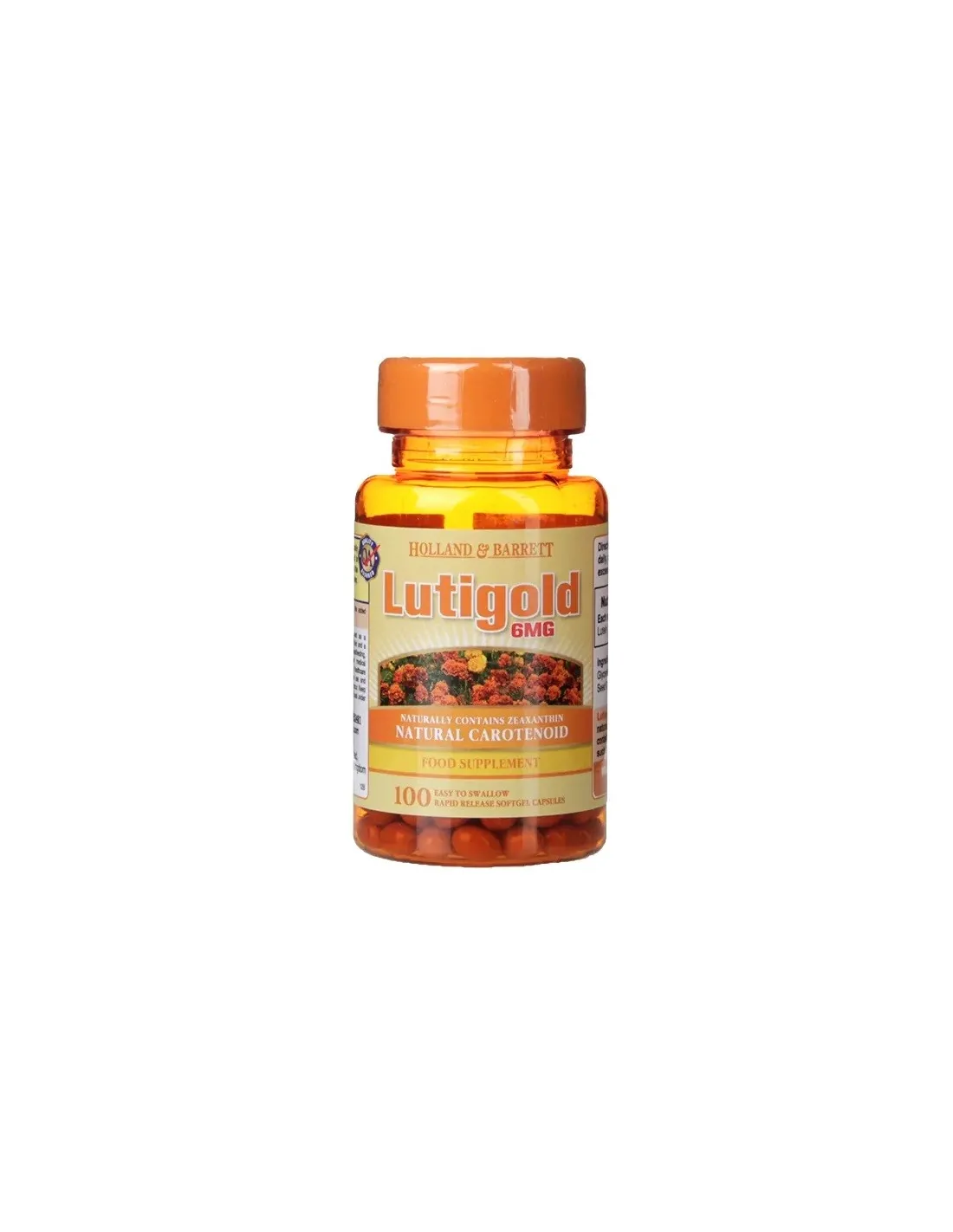 Le capsule Holland & Barrett Lutigold Lutein contengono carotenoidi di origine vegetale: luteina e zeaxantina, i pigmenti presenti in frutta e verdura che conferiscono loro una tonalità gialla o rossastra. La luteina non viene prodotta dall'organismo, quindi può essere ottenuta solo attraverso la dieta e gli integratori di luteina.