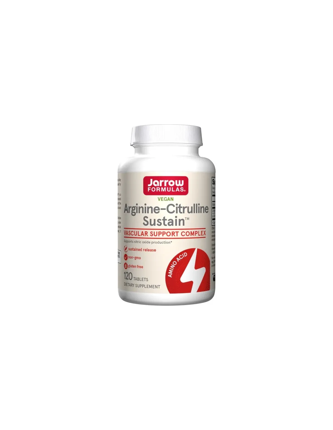 Arginine-Citrulline Sustain di Jarrow Formulas è un integratore alimentare studiato con cura che sfrutta la potenza di due potenti aminoacidi - L-Arginina e L-Citrullina - insieme alla vitamina C antiossidante. Questa potente combinazione favorisce la produzione naturale di ossido nitrico (NO) nell'organismo.