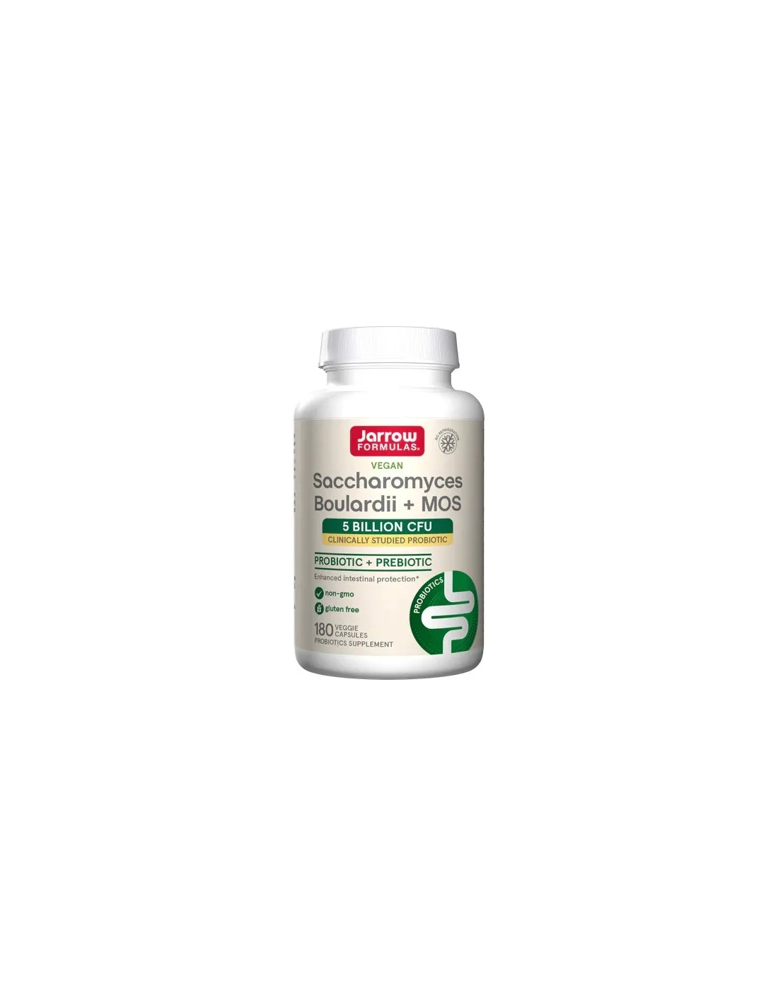 Integratore probiotico a base di Saccharomyces boulardii con 5 miliardi di CFU per capsula, arricchito di Mannano-Oligosaccaridi (MOS). Supporta la normale microflora intestinale e la funzione digestiva. 180 capsule vegetali vegane, senza glutine.