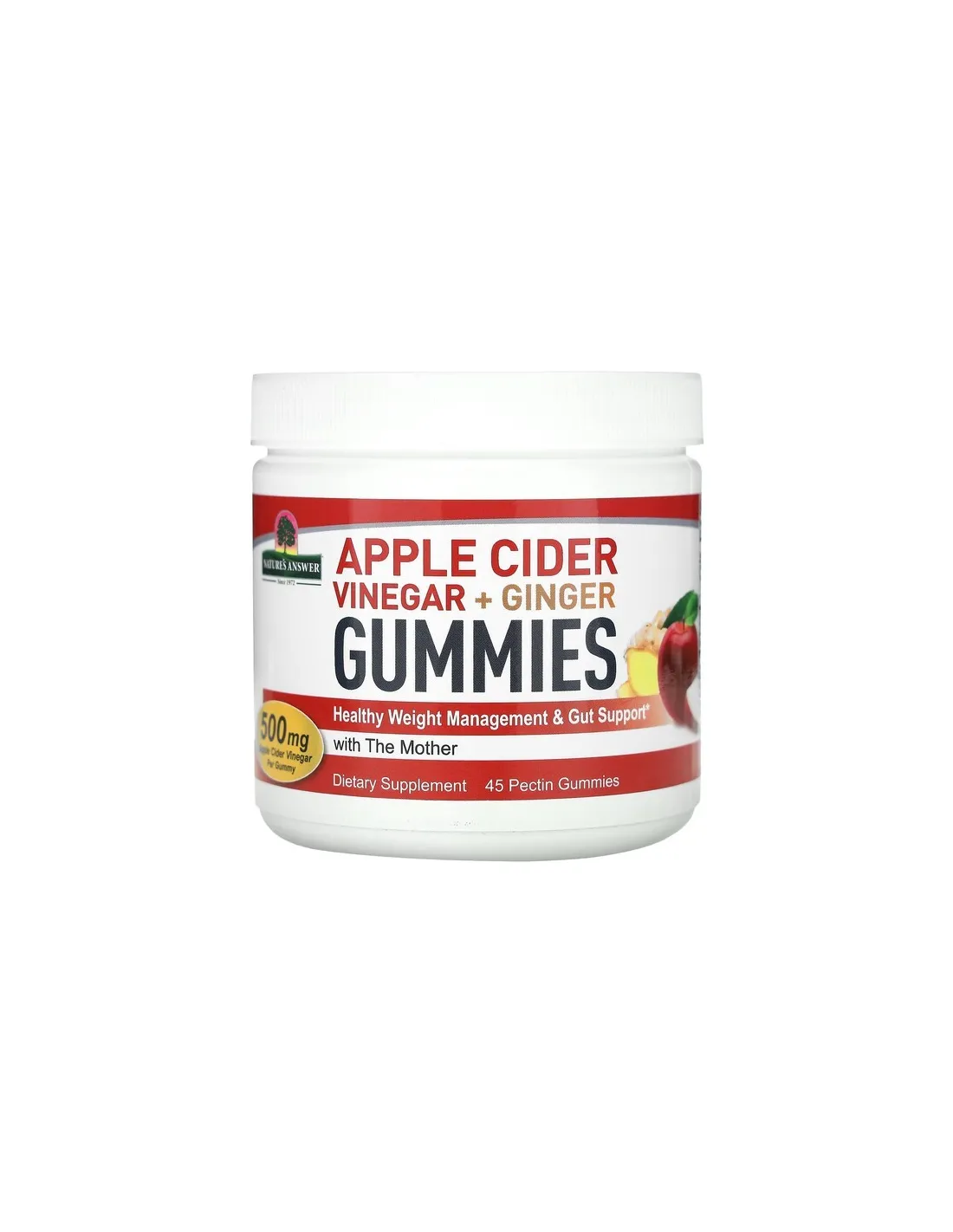 Nature's Answer utilizza solo ingredienti naturali, come le mele coltivate con acqua pulita e luce solare naturale, per offrirvi deliziose gommine all'aceto di sidro di mele e zenzero. Questa comoda forma di gommine offre tutti i benefici e molto altro ancora, con il vantaggio di un integratore dal gusto eccellente.