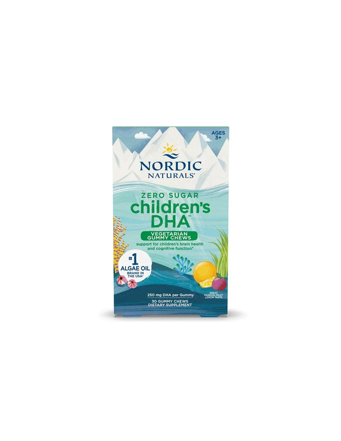 Gommose Vegetariane DHA per Bambini Nordic Naturals, 250mg Frutto della Passione Limone 30gommine