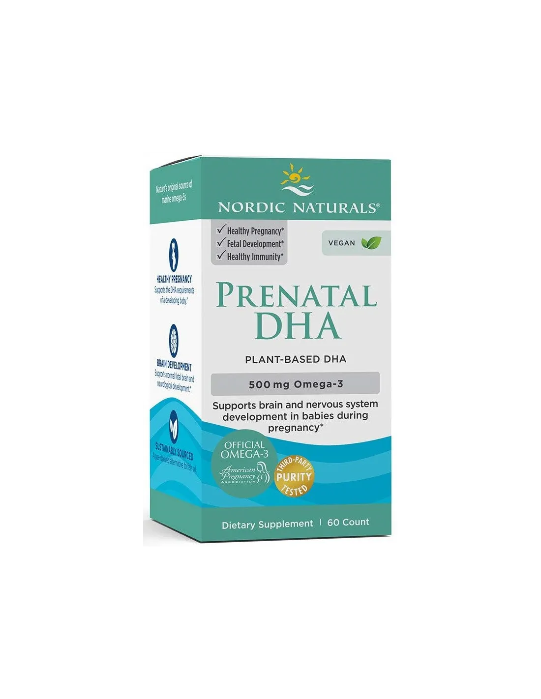 L'acido grasso Omega-3 DHA è fondamentale per il mantenimento della salute del cervello e per il supporto della funzione visiva, ed è quindi particolarmente importante durante la gravidanza e l'allattamento, quando si sviluppano il cervello e gli occhi del feto. Per le madri che seguono una dieta vegana o vegetariana, assicurarsi una quantità sufficiente di DHA può essere spesso difficile. È qui che entra in gioco Nordic Naturals Vegan Prenatal DHA. Questo integratore, realizzato con cura, fornisce una fonte pulita e sostenibile di DHA derivata da microalghe, assicurando alle madri di sostenere la loro salute e lo sviluppo dei loro bambini in crescita senza compromettere le loro scelte alimentari.