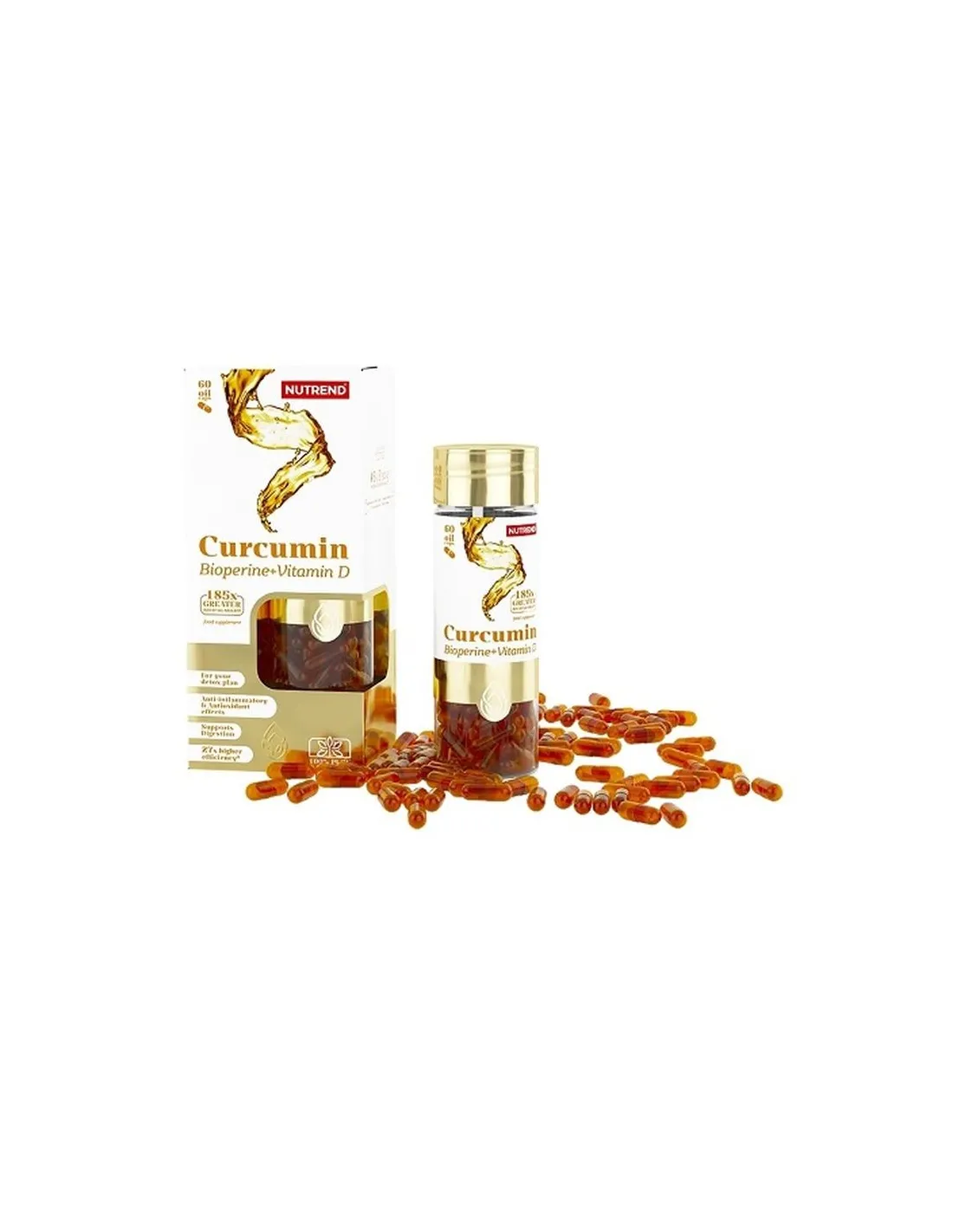 Nutrends CURCUMIN BIOPERIN VITAMIN D si caratterizza anche per il fatto che entrambi i principi attivi sono combinati in una capsula lipidica con un alto contenuto di vitamina D3. Il grasso contenuto nella capsula assicura inoltre un eccellente assorbimento della curcumina nel corpo.