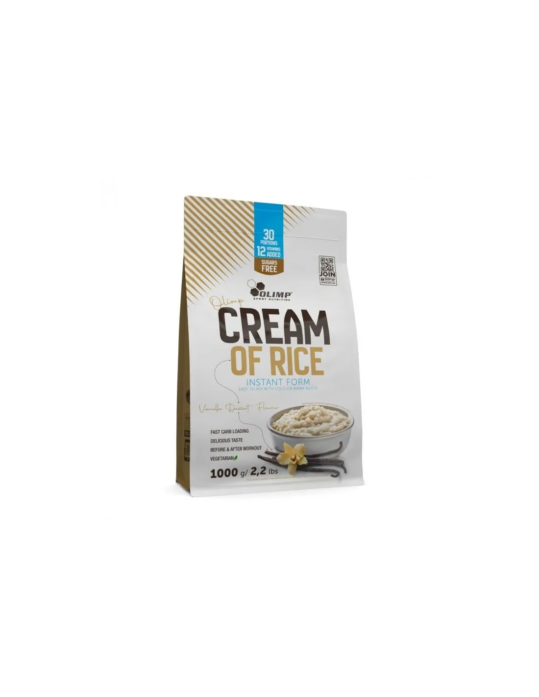 Olimp Cream of Rice è un integratore alimentare costituito da una porzione di carboidrati complessi con l'aggiunta di un complesso di vitamine (A, C, D, E e vitamine del gruppo B - tiamina, riboflavina, niacina, acido pantotenico, vit. B6, biotina, acido folico, vit. B12). La crema è facilmente digeribile, ha una consistenza delicata e piacevole quando sciolta in acqua e un sapore sensazionale. Inoltre, la sua preparazione richiede letteralmente un attimo!