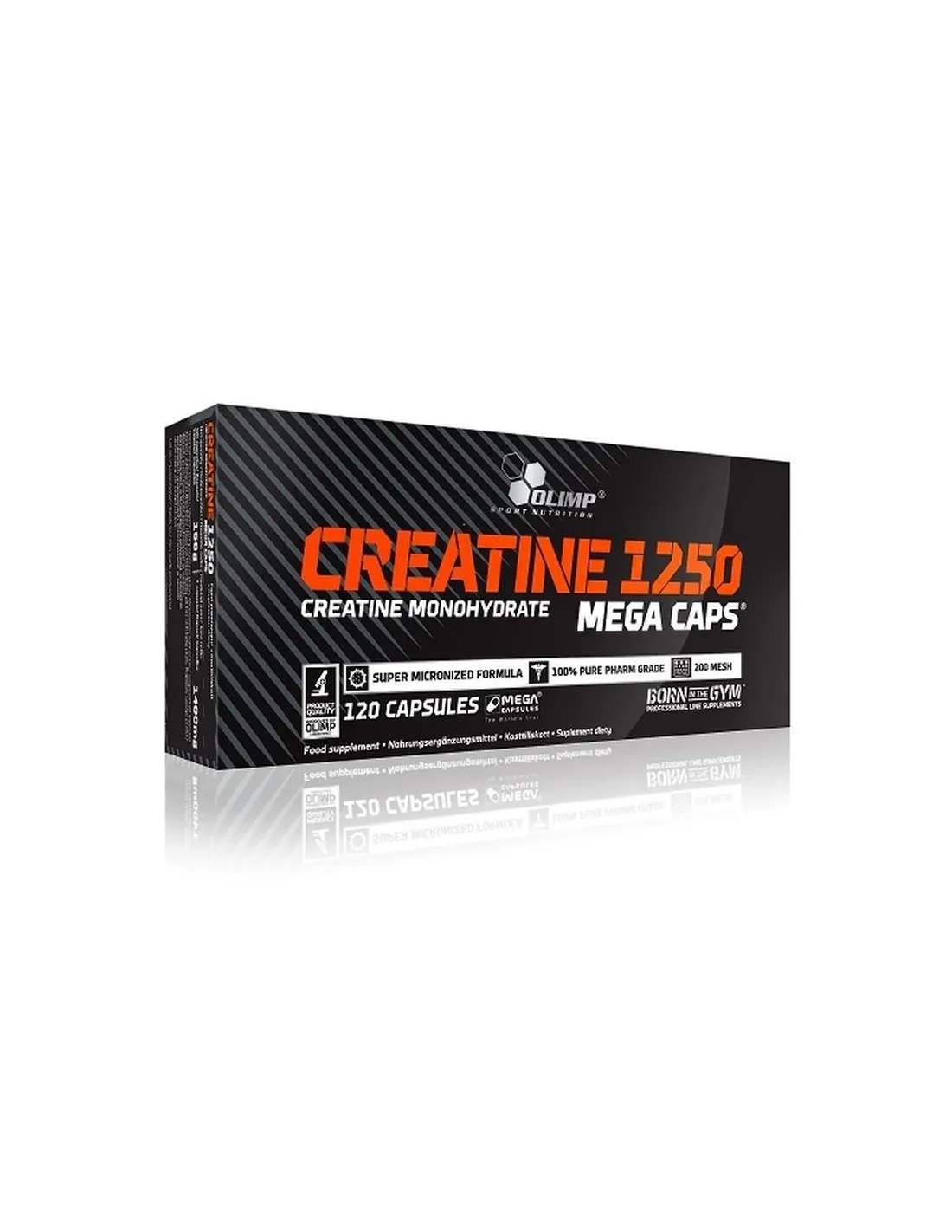 Olimp Creatine 1250 Mega Caps è l'integratore di creatina ideale per sportivi. Ogni capsula contiene 1250mg di pura creatina monoidrato micronizzata.
