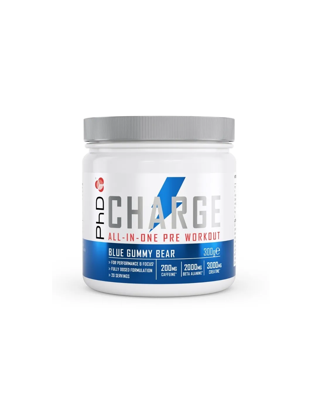 PhD Charge è un preallenamento che migliora le prestazioni. PhD Charge offre una formula sinergica completamente dosata che garantisce una potenza esplosiva, un'energia impareggiabile, una pompa muscolare pazzesca e un tamponamento dell'acido lattico. Inoltre, durante l'allenamento, fornisce la concentrazione mentale e la grinta necessarie per garantire l'intensità, giorno dopo giorno.