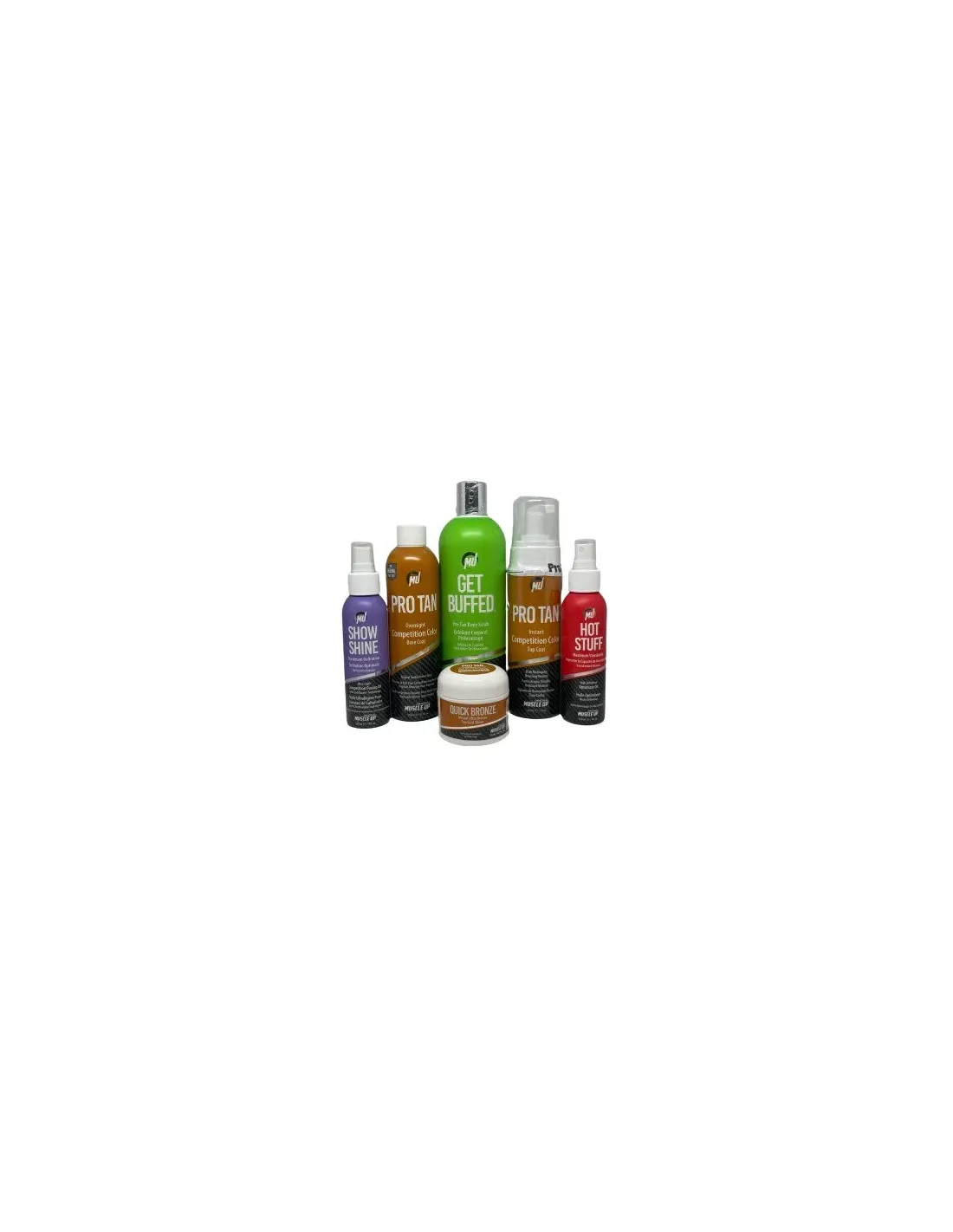 I componenti sono di alta qualità e svolgono funzioni specifiche. Il Pro Tan Overnight Competition Color è una lozione abbronzante che dona un colore ramato ideale per le gare. Si consiglia di utilizzarlo in combinazione con il Pro Tan Instant Body Builder Bronze per ottenere un colore marrone scuro intenso. Lo Show Shine Maximum Definition esalta lucentezza e chiaroscuri sotto le luci del palco, accentuando volume e definizione muscolare. Infine, la "Get Buffed Exfoliating Cream" facilita la rimozione della lozione abbronzante a gara conclusa.
