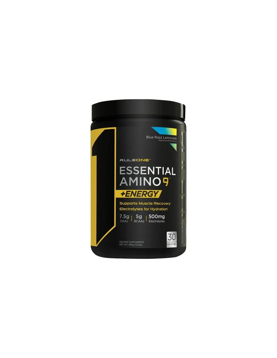 R1 Essential Amino 9 fornisce 7,5 g di tutti i 9 aminoacidi essenziali con estratto di foglie di tè per l'energia e l'aggiunta di elettroliti per l'idratazione.