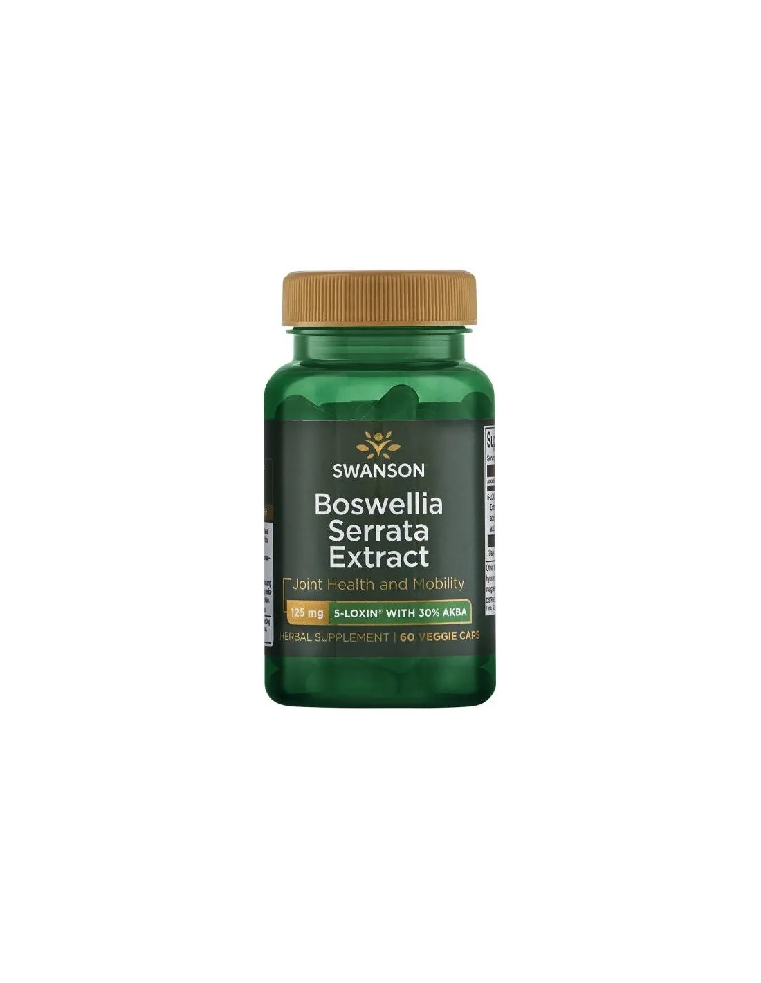 Trasformate la vostra salute articolare con l'estratto di Boswellia Serrata di Swanson. Ogni capsula contiene 125 mg di potente estratto di Boswellia serrata, standardizzato per contenere il 30% di acido acetil-11-cheto-beta boswellico (AKBA), l'acido boswellico più attivo.