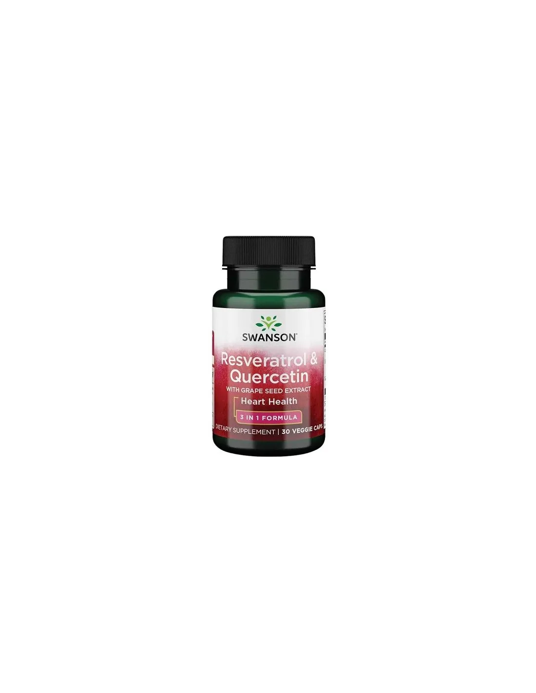 Swanson Ultra Resveratrol & Quercetin è un integratore alimentare che combina due noti antiossidanti. Contiene resveratrolo puro estratto dall'alga giapponese e un estratto di semi d'uva a spettro completo standardizzato al 90% in polifenoli. La formulazione è arricchita con quercetina, un flavonoide riconosciuto per le sue proprietà antiossidanti.