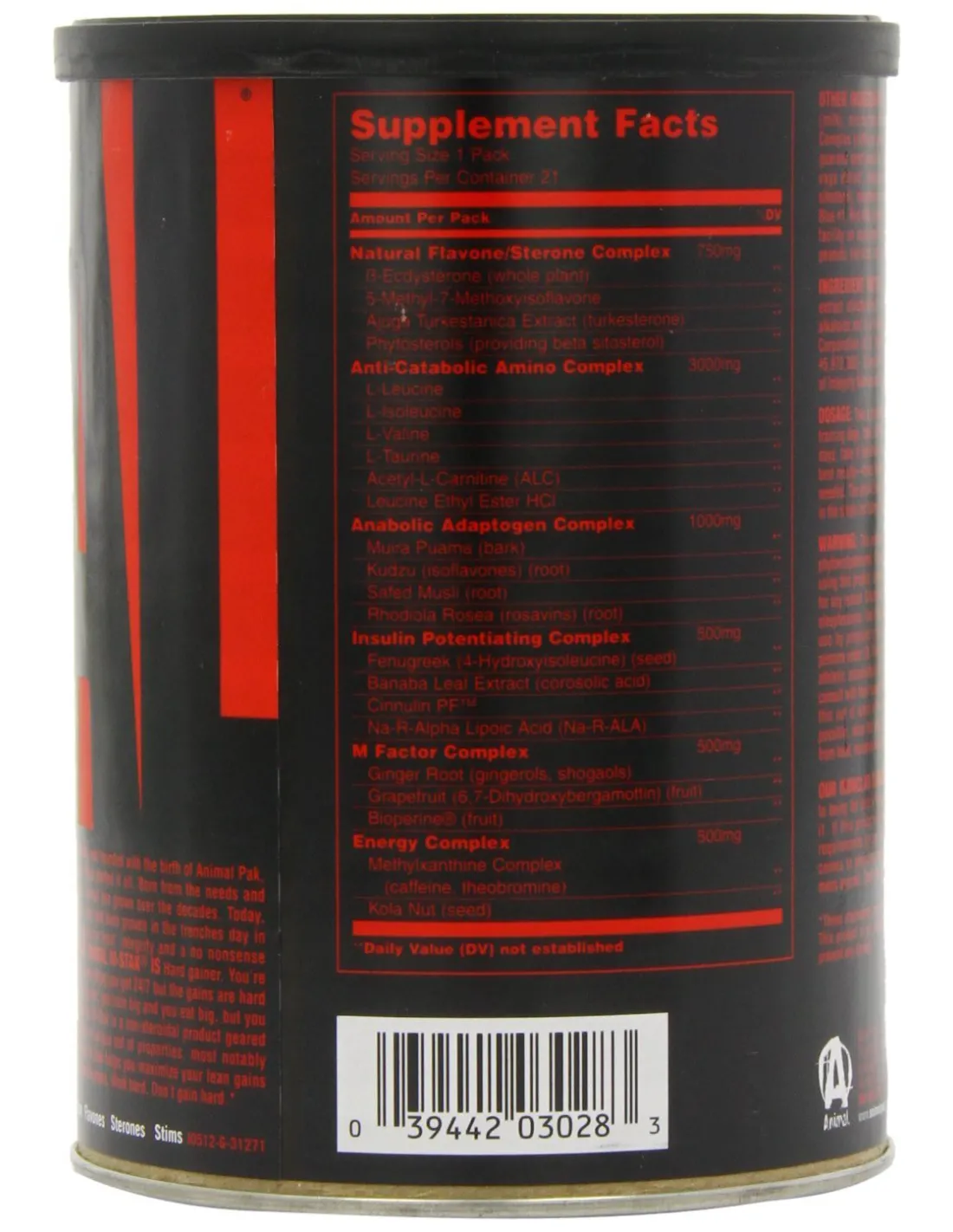 Cos'è anabolico? Costruzione muscolare e processi che ci portano verso una nuova crescita attraverso la sintesi proteica, la ritenzione di azoto e il partizionamento dei nutrienti. Animal M-Stak è un integratore naturale non ormonale progettato per i più ostinati hardgainer. Dal principiante verde al veterano irriducibile, tutti abbiamo affrontato quel momento bloccandoci bruscamente quando i nostri progressi procedono a vuoto su un altopiano. Non riesci a guadagnare un'altra sterlina, gli allenamenti sono stantii, gli ascensori sono statici. Questa è la sindrome dell'hardgainer. Nel disperato tentativo di accendere una nuova crescita, abbiamo formulato Animal M-Stak (anche animal mstack / m stak universal).