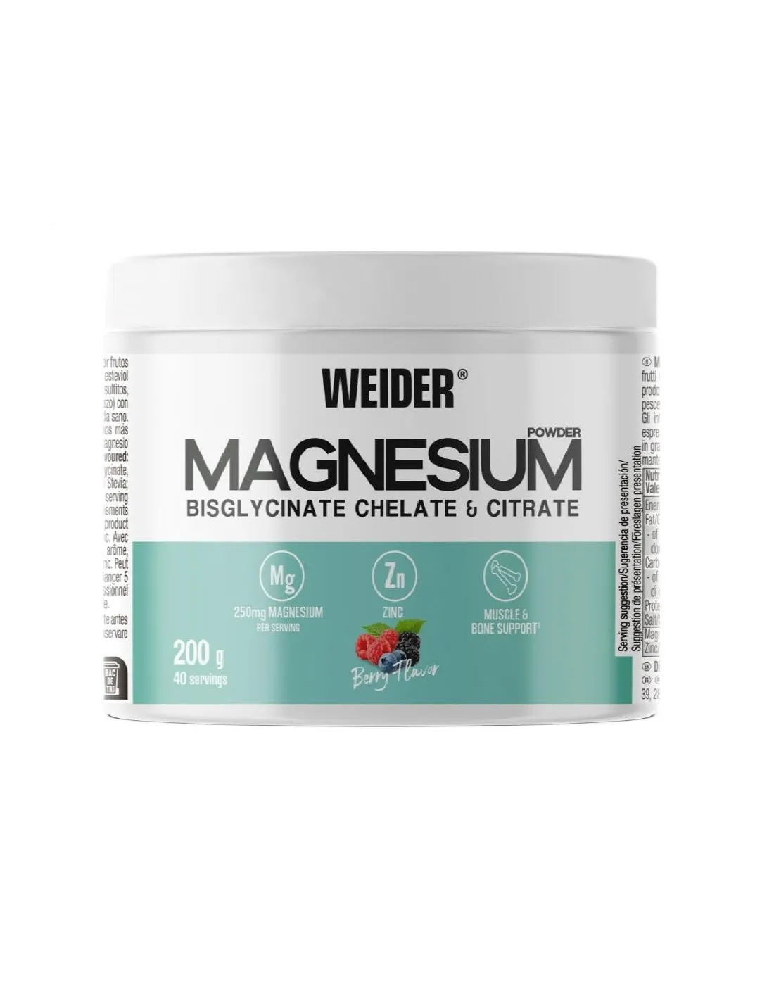MAGNESIUM POWDER di Weider, un'azienda internazionale pioniera e specializzata nella nutrizione sportiva con oltre 85 anni di esperienza che offre qualità e innovazione.