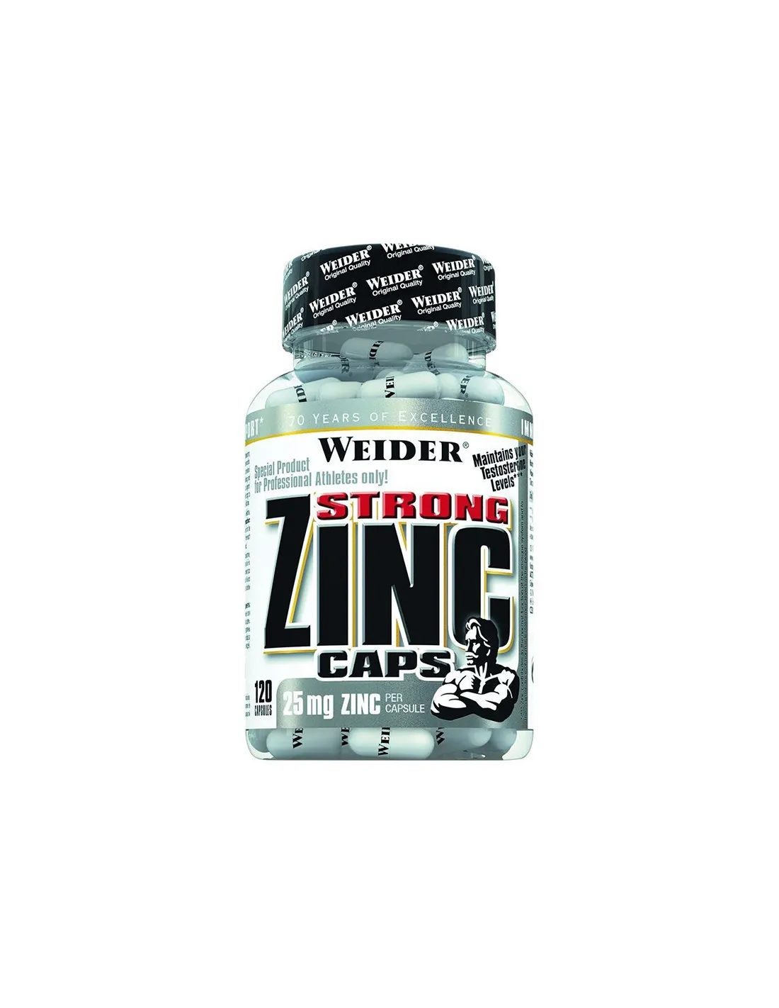 Weider Strong Zinc 25mg è una capsula di integratore ad alto dosaggio che fornisce ben 25 mg di zinco sotto forma di prezioso citrato di zinco. Lo zinco è un oligoelemento essenziale che deve essere assunto regolarmente attraverso gli alimenti per evitare carenze. Circa il 90% dello zinco presente nell'organismo si trova nelle ossa e nei muscoli, per cui è importante integrare lo zinco per mantenere la salute delle ossa. Il restante 10% dello zinco è distribuito in vari organi, come pelle, reni, cervello, intestino e fegato. Sostenendo l'assorbimento dello zinco da parte dell'organismo, questo integratore può contribuire a mantenere livelli ottimali di zinco nel corpo.